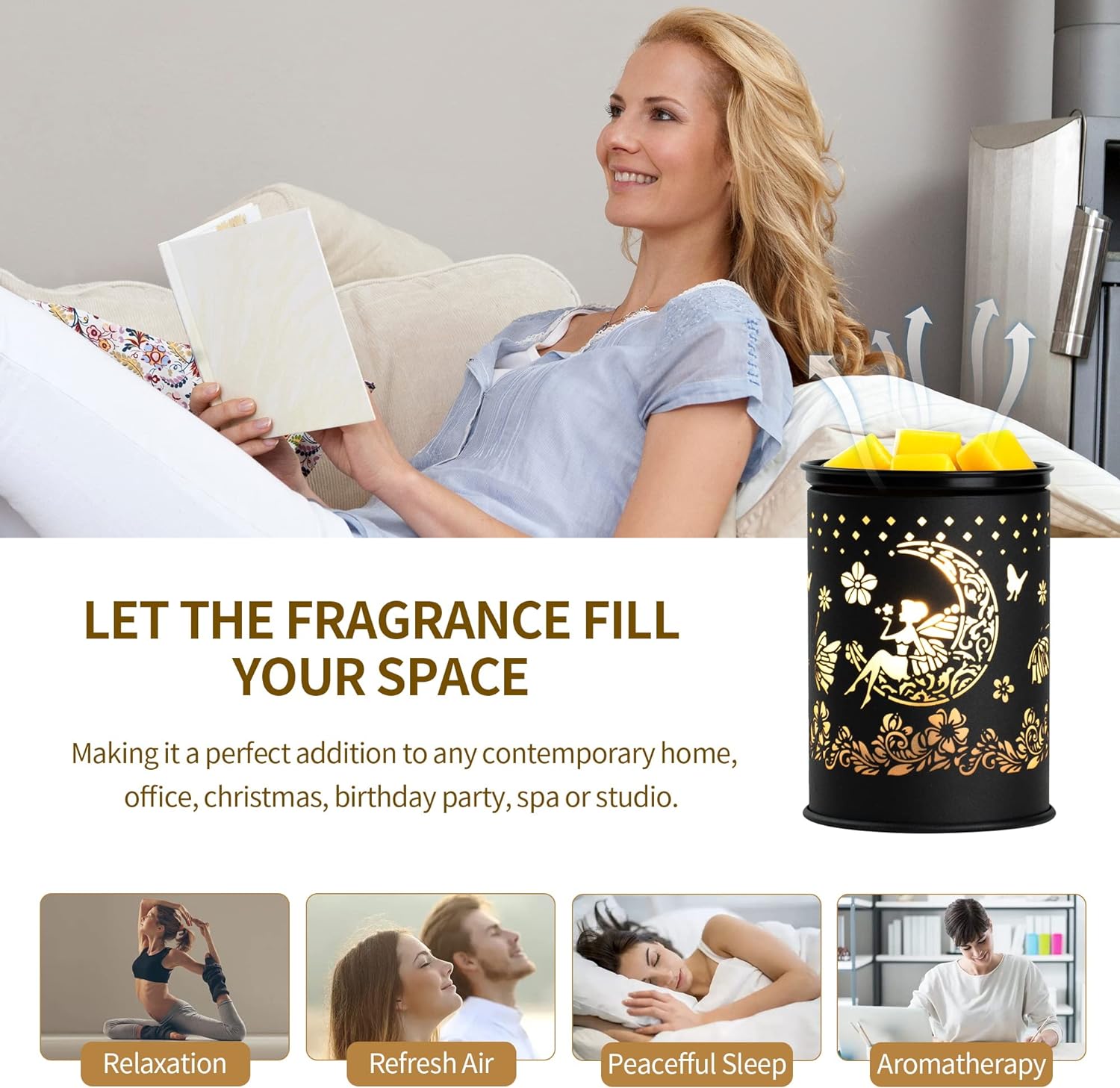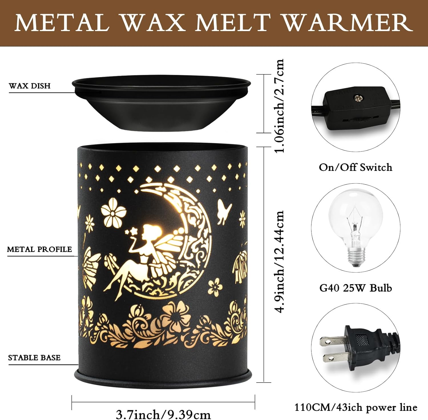 Metal Wax Warmer Electric,Wax melt Warmer,Candle Wax Burner, Candle Warmer,Candle Melter,for Home Office Décor and Gifts for Holiday(Moon/Flower Fairy)…