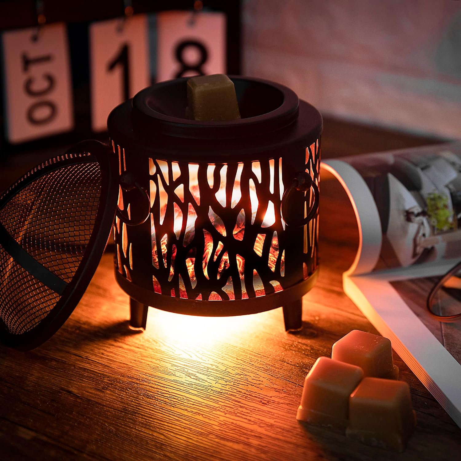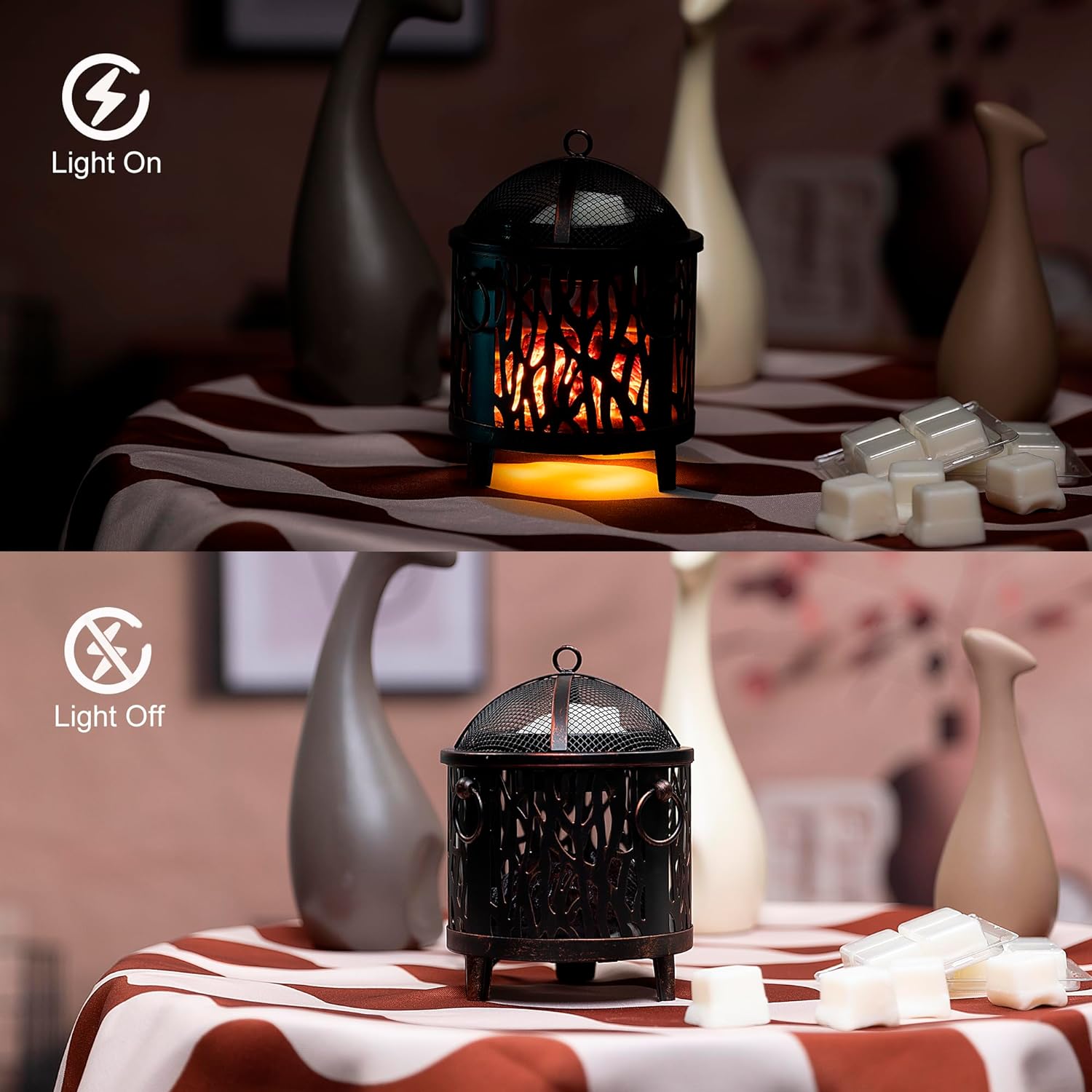 - 🔥【Unique design】Candle wax warmer uses a ceramic heating plate for wax melting. The metal frame evokes the mystery of the forest, and LED bonfire lights symbolize hope. The PTFE technology in the wax dish makes it resistant to high temperatures and corrosion, ensuring a long lifespan,Don't miss out on this unique and stylish way to melt your wax!