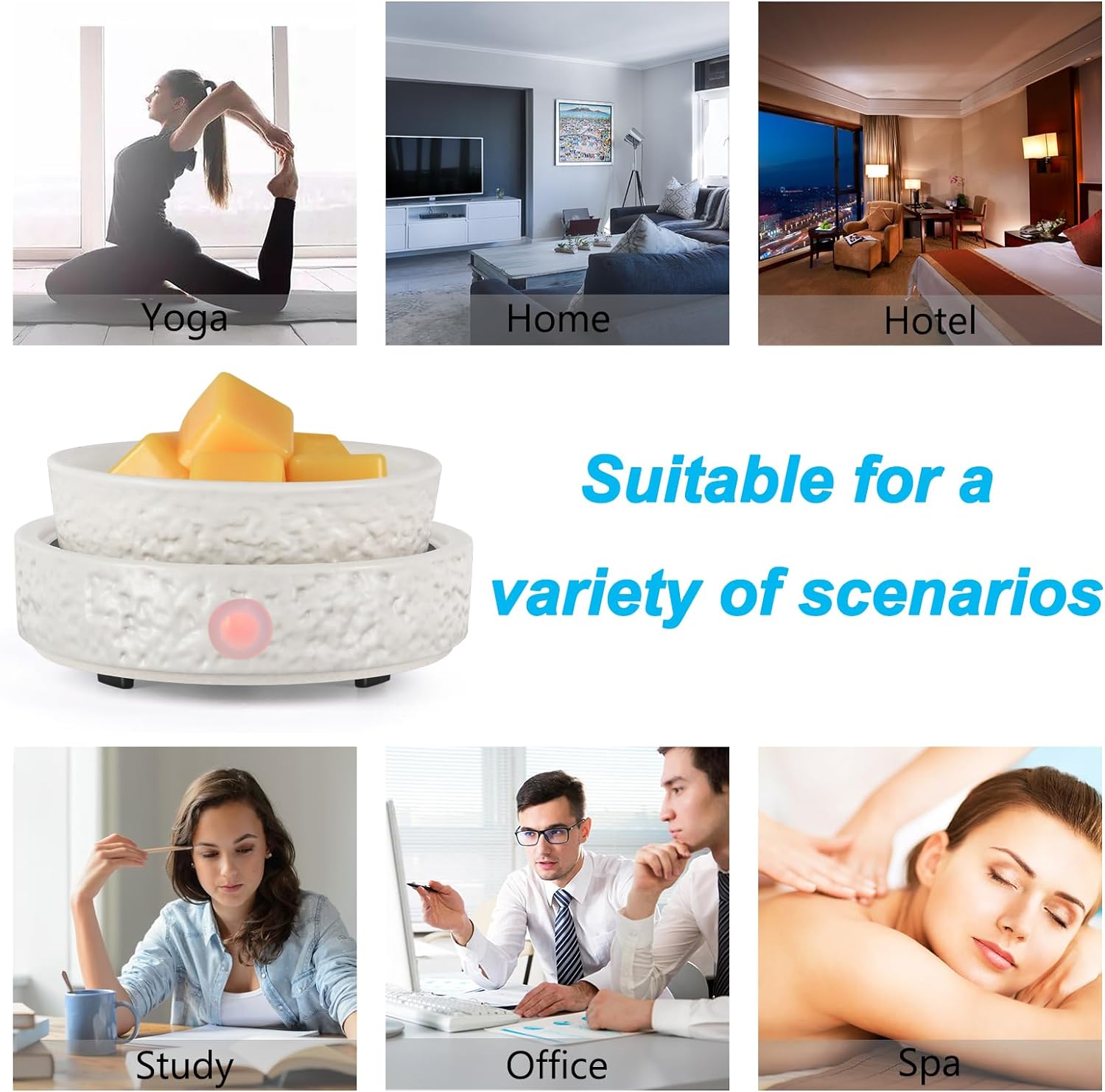 - 【Elegant Design】 Our exclusive design of premium electric wax melter is made of high quality ceramic and heating plate.A perfect addition to home or office. When you're sleeping or at work, the candle wax melter can create a comfortable atmosphere.