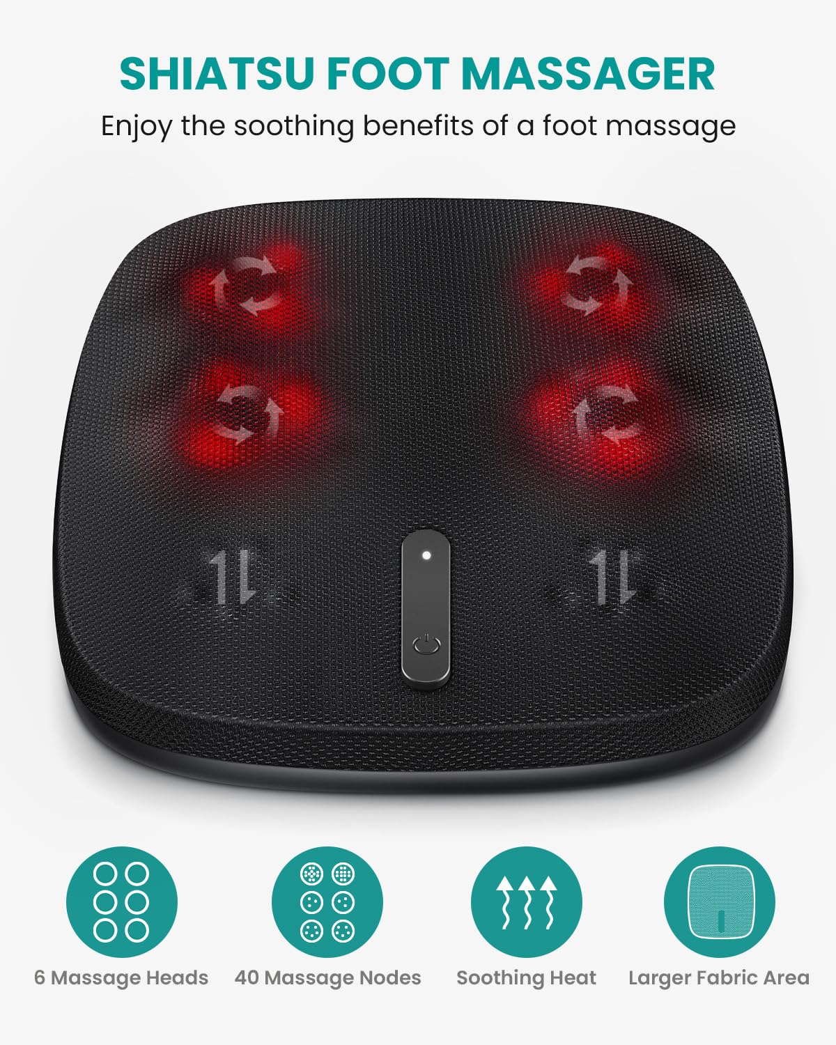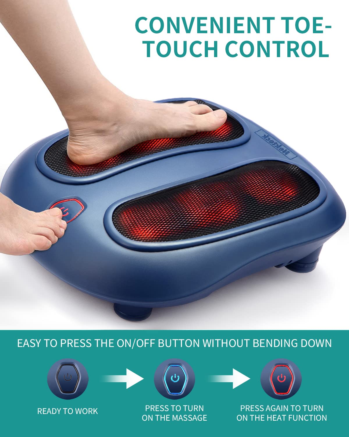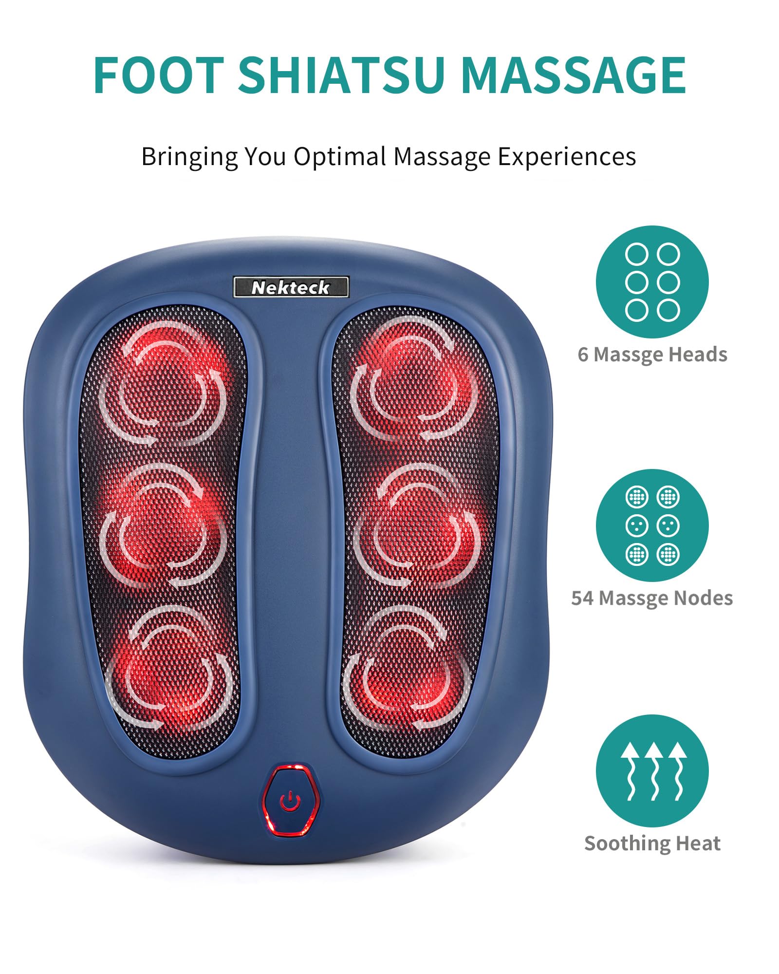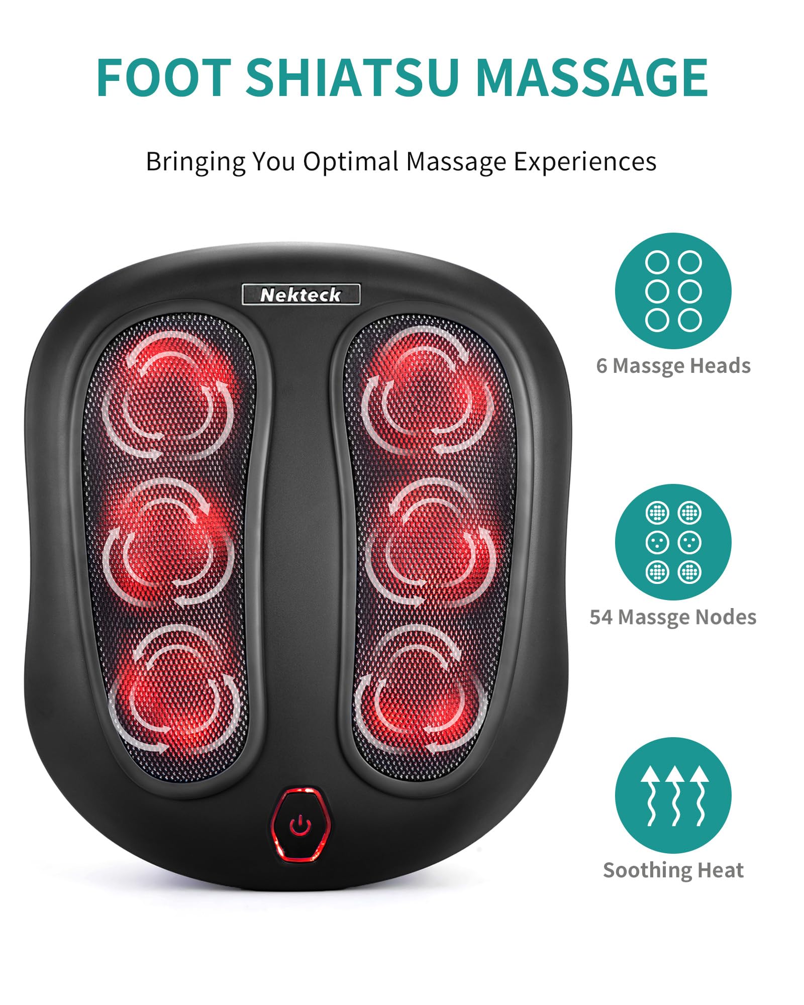 Nekteck Foot Massager with Heat, Shiatsu Heated Electric Kneading Foot Massager Machine for Plantar Fasciitis, Built-in Infrared Heat Function and Power Cord (Black)