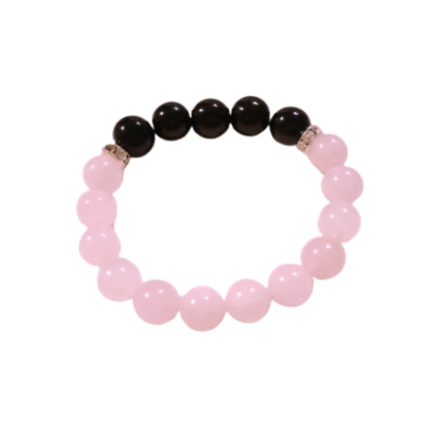 Newly handcrafted from ShopAtLuxe, this eye catching, limited edition bracelet is constructed of semi precious black Onyx and pink quartz rounds, suspended from a 7.5 inch stretch clear cord. Centering the Onyx rounds are two crystal embellished spacer beads. Casual fit. Hypoallergenic; lead and nickel free. Complimentary gift with purchase!
