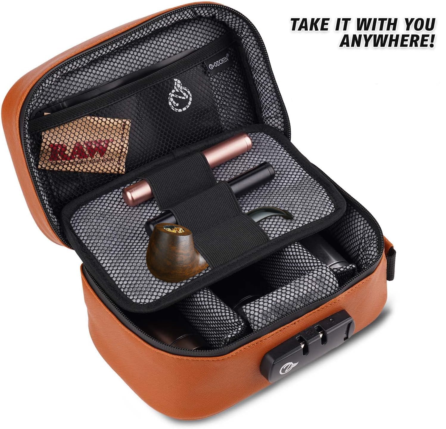 - 【PRACTICAL FOR ALL YOUR NEEDS】This lock bag measures 8.5 x 5.5 x 4.6inch. Our bag contains 3 removable dividers allowing you to organize your items however you choose. Suitable for storing your pipes, tobacco, U Disk, cards, strong odor accessories etc.
