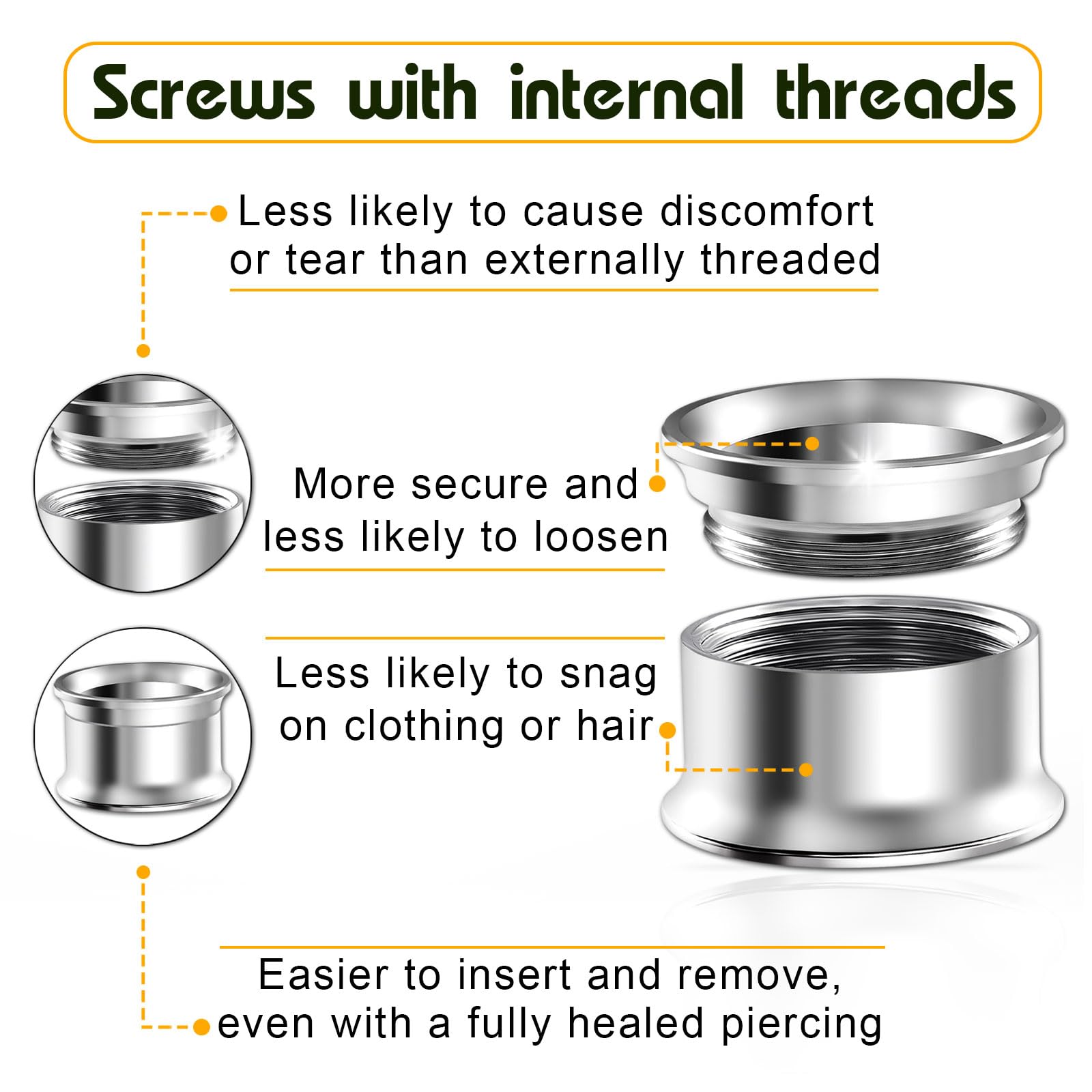Pair of Internal Screw 316L Surgical Steel Double Flared Saddle Piercing Jewelry Stretcher Ear Plug Earring Lobe flesh Tunnel
