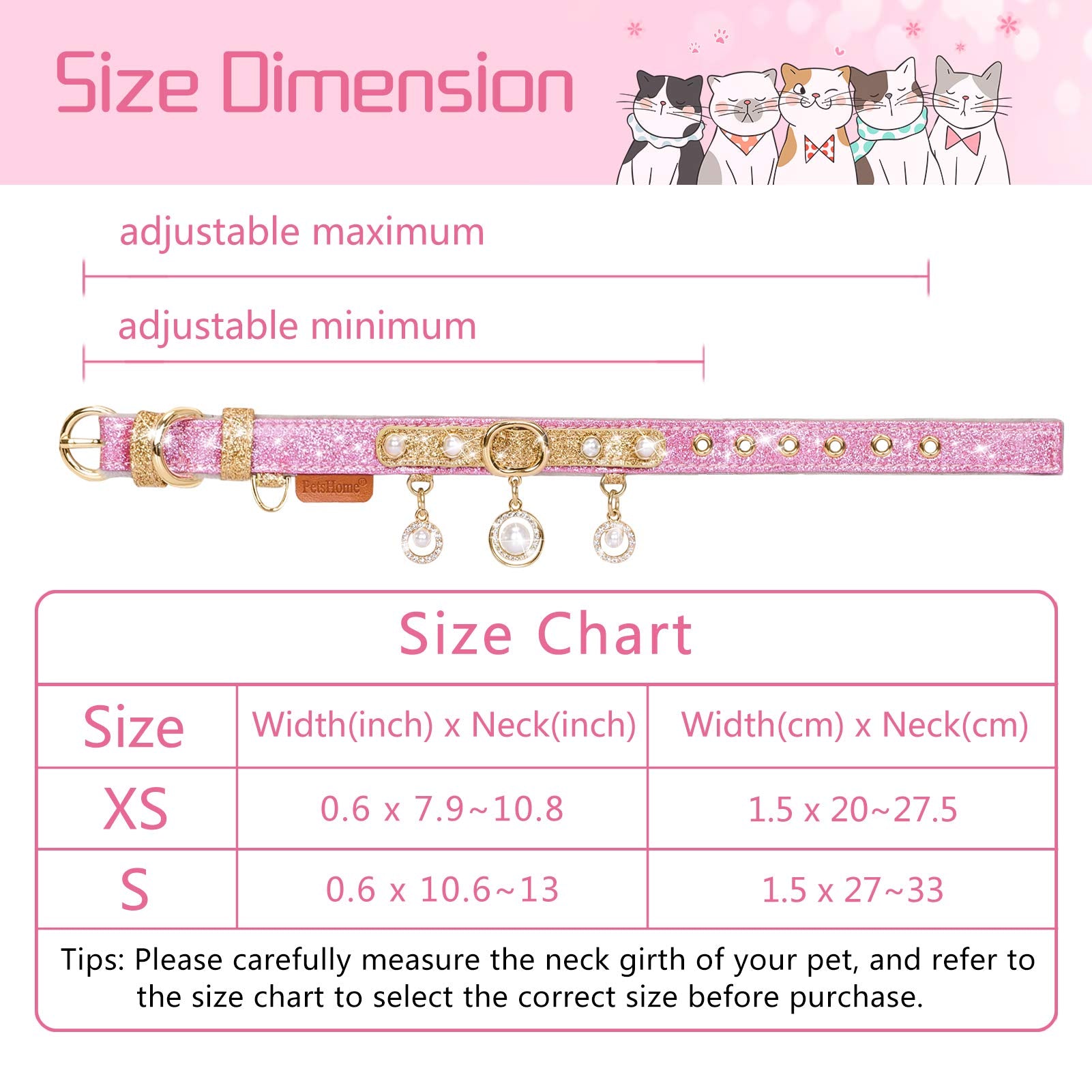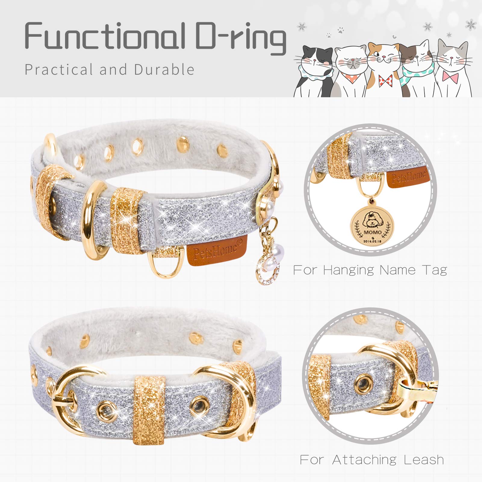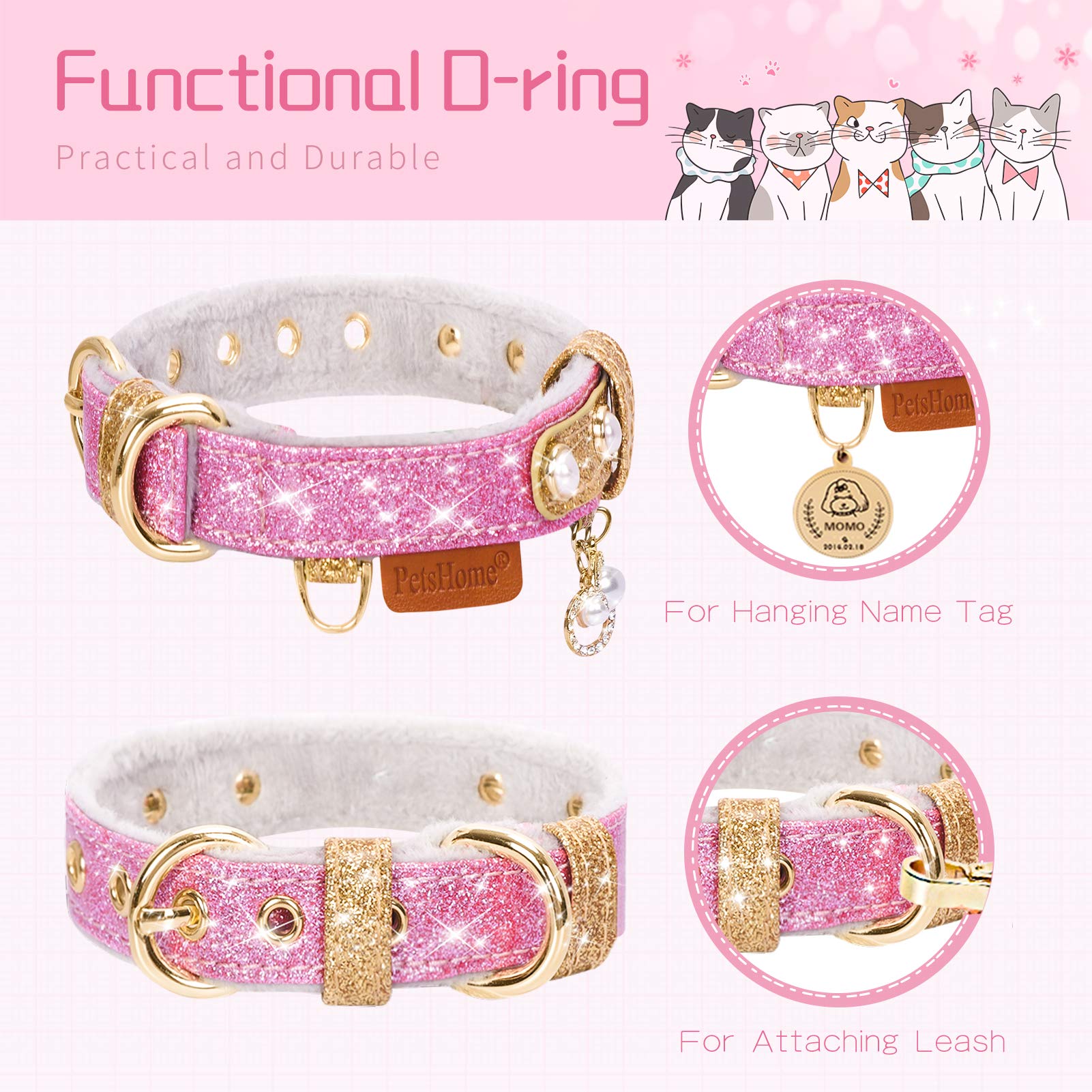 - Sparkling PU Leather: made of bling PU leather and are equipped with metal buckle and D-ring, special and durable. Inner soft polyester flannel help protect pet's neck.
