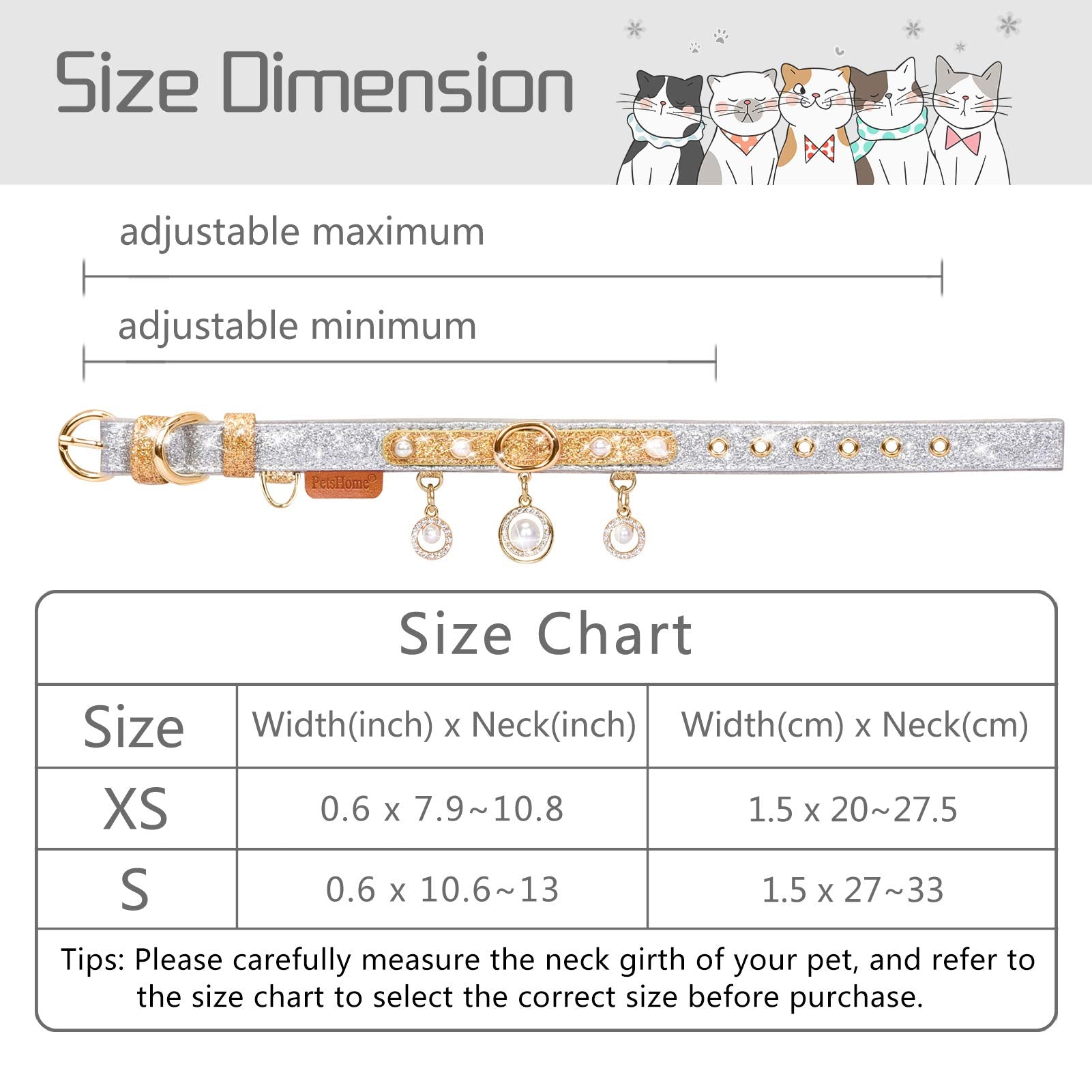 | Size: Extra SmallBeautiful collar! So cute! I was looking for a very "extra" collar for my lil kitty, and this one is almost perfect. She looks so cute and the collar is made of a very nice material, and the inner band is made of a plush suede-like fabric. Goood quality and beautiful! Would recommend. | Size: Extra SmallYou must buy it The thickness of this collar couldn't be better is very soft in the inside comfy for her little neck and in the outside is so beautiful, sparkling and girly. With a pink dress she looks stunning. Buy it if u want ur pet to look like a princess. | Size: Extra SmallYou must buy it The thickness of this collar couldn't be better is very soft in the inside comfy for her little neck and in the outside is so beautiful, sparkling and girly. With a pink dress she looks stunning. Buy it if u want ur pet to look like a princess. |