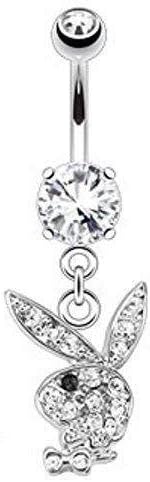 Playboy Belly Button Ring Multi Paved Gems on Bunny Dangle (Clear/black eye)