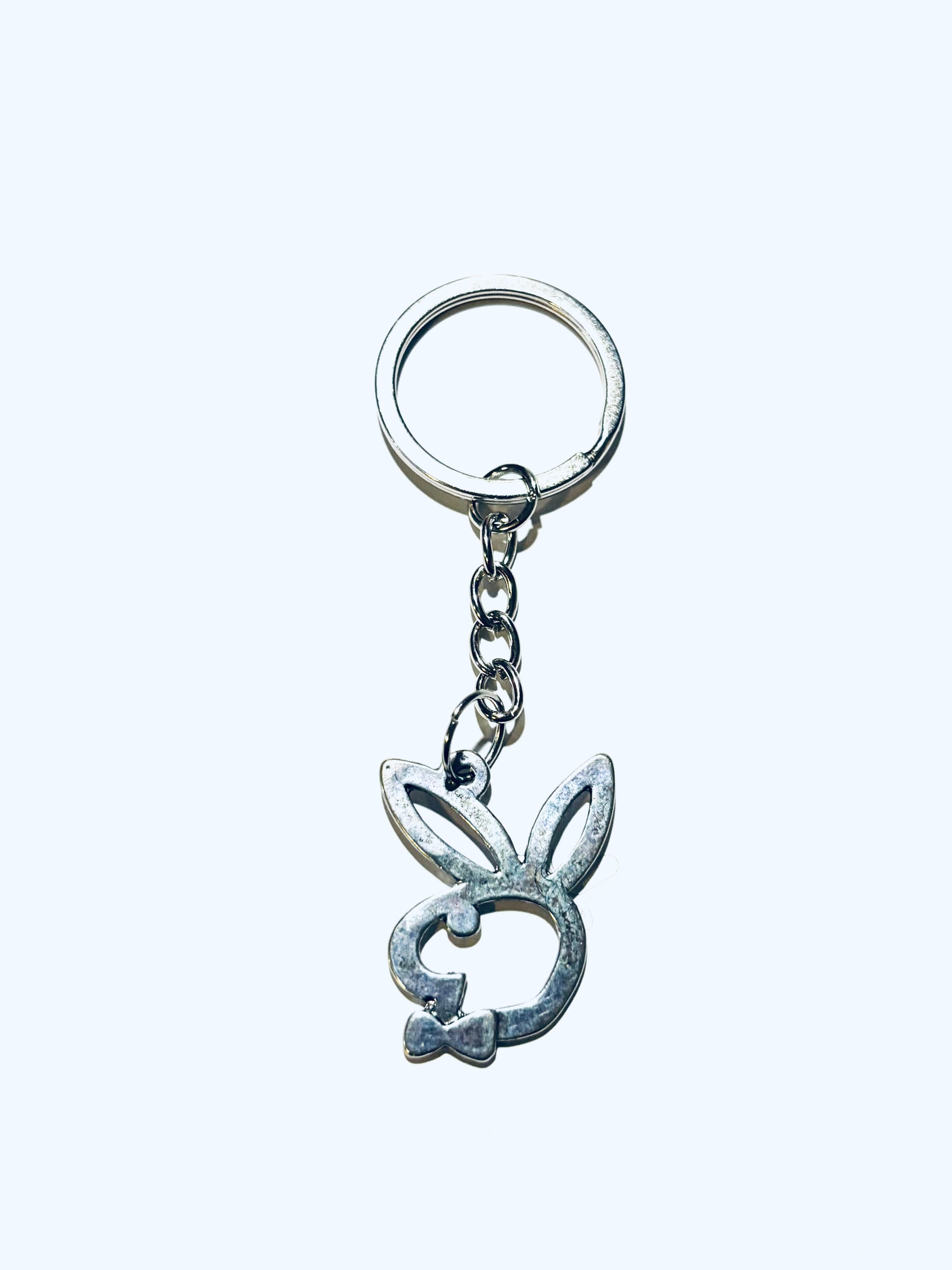 Adorable Playboy Bunny Outline Pendant Keychain. Measurements shown in photo. Ideal for adding a playful touch to backpacks or keys. Made with a high quality steel metal split key ring. Complimentary gift included!