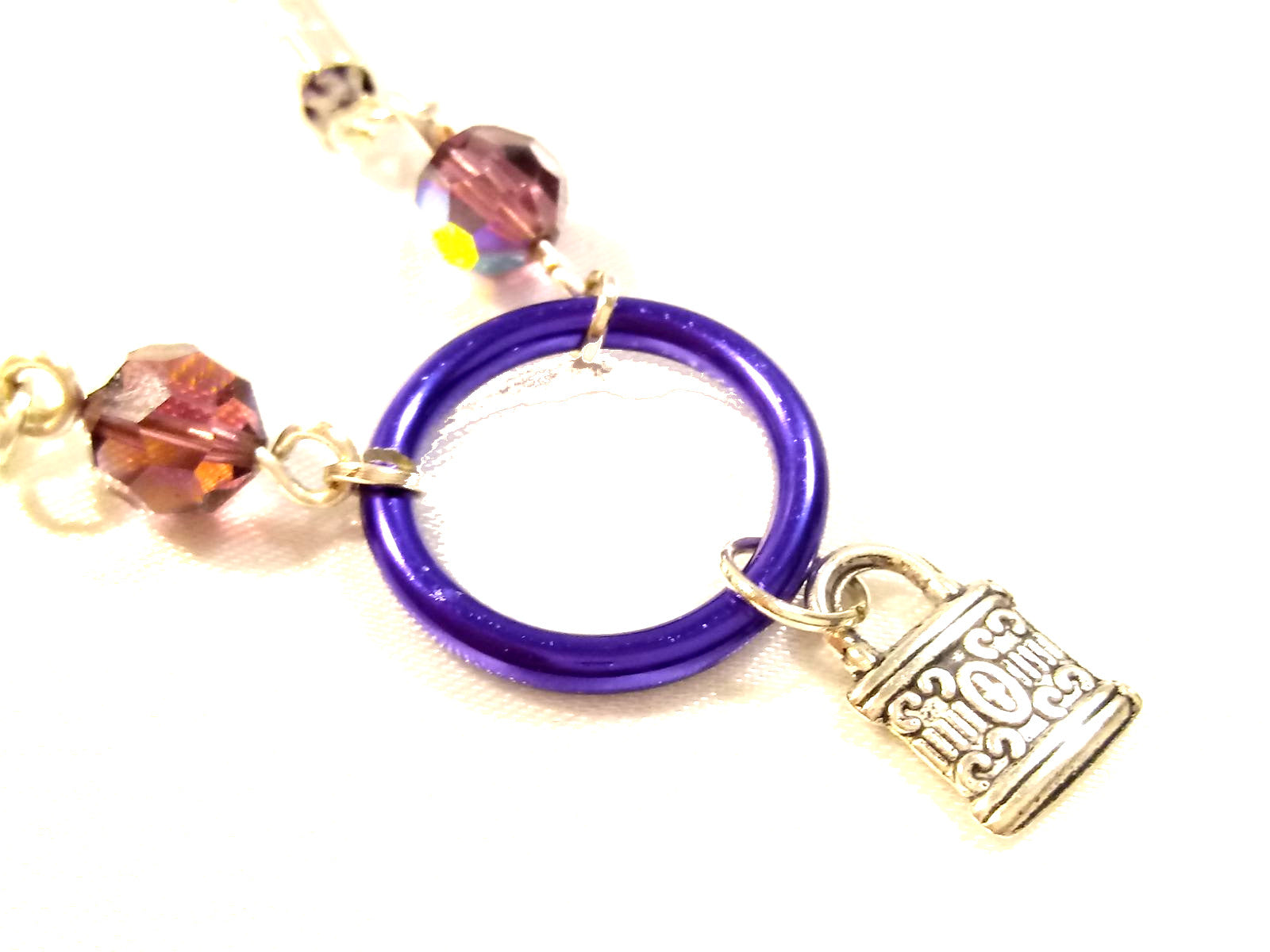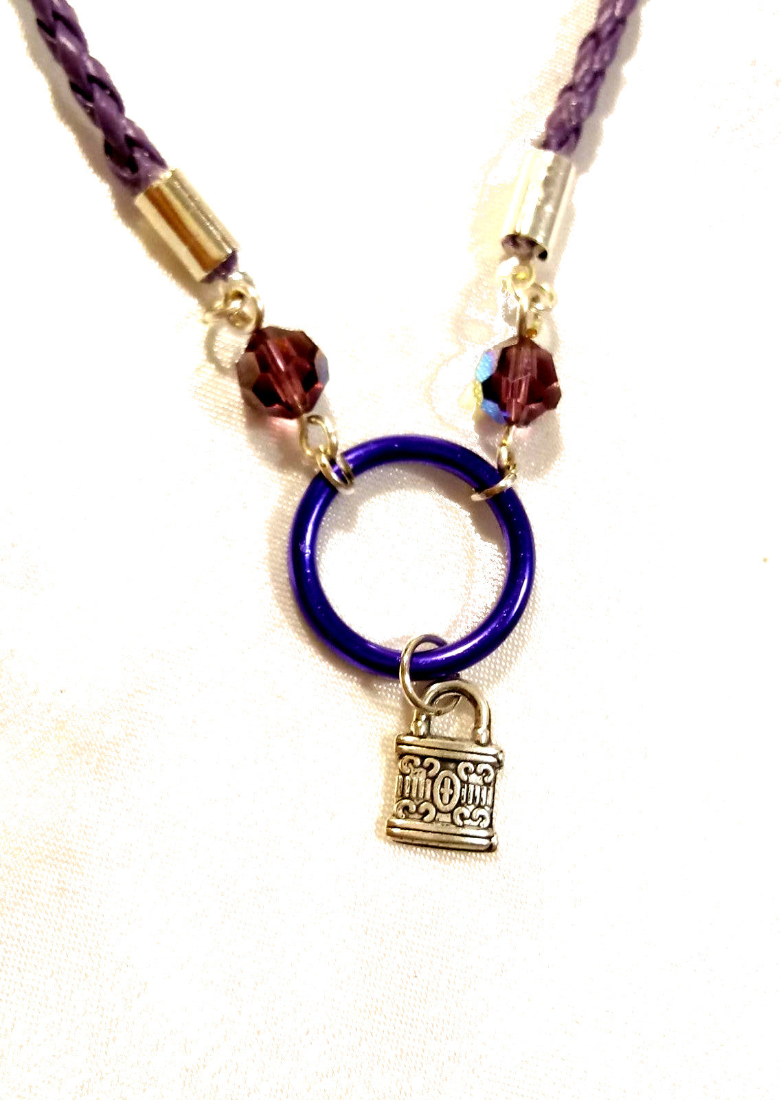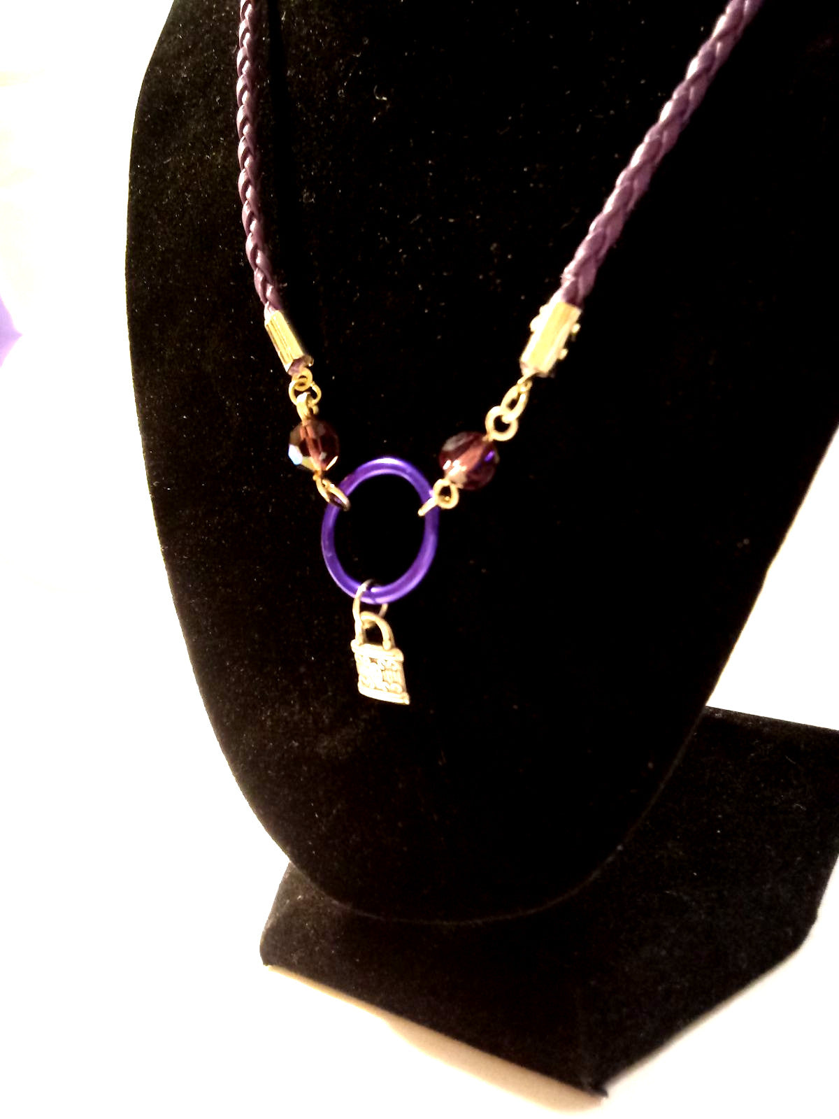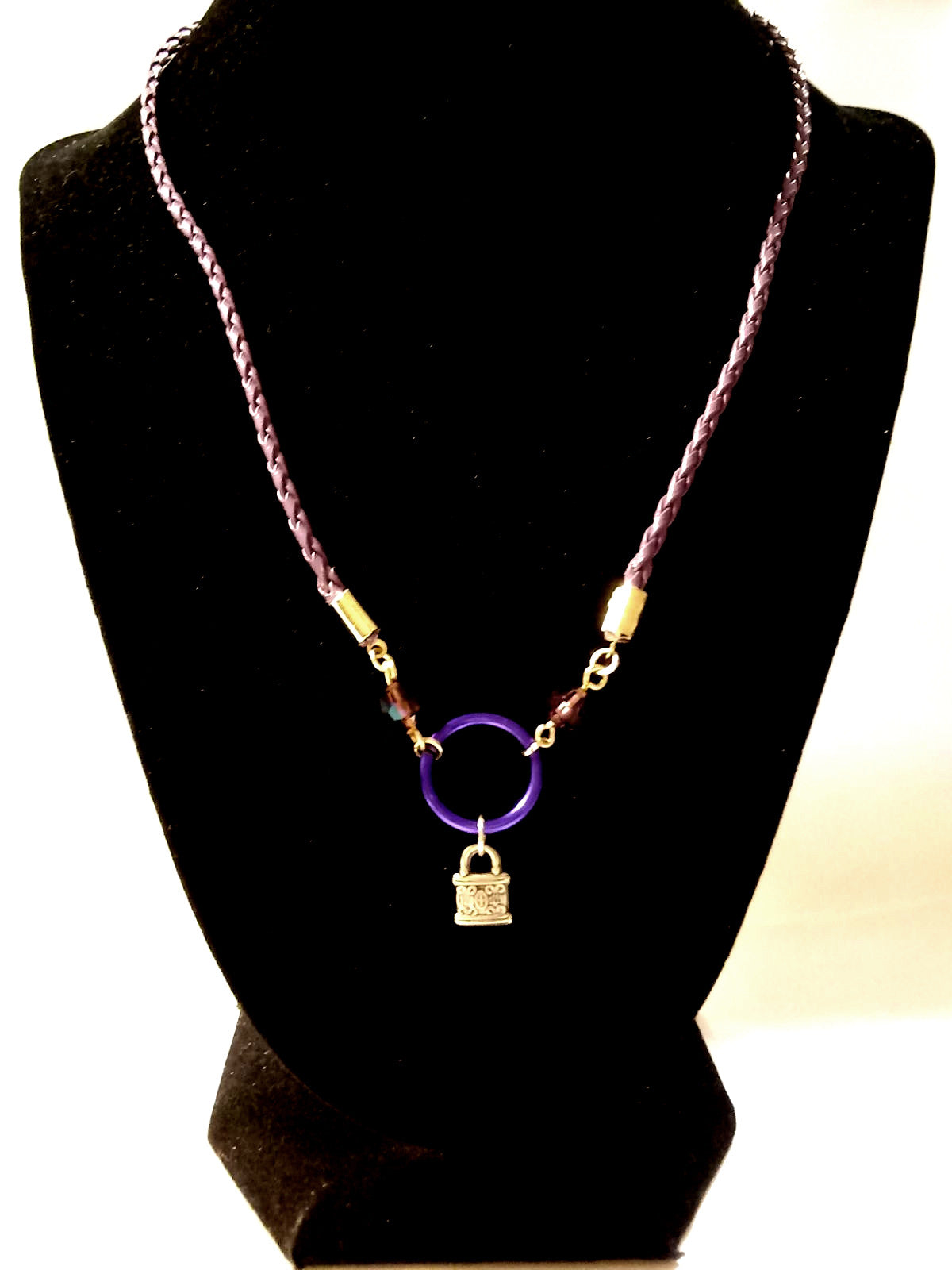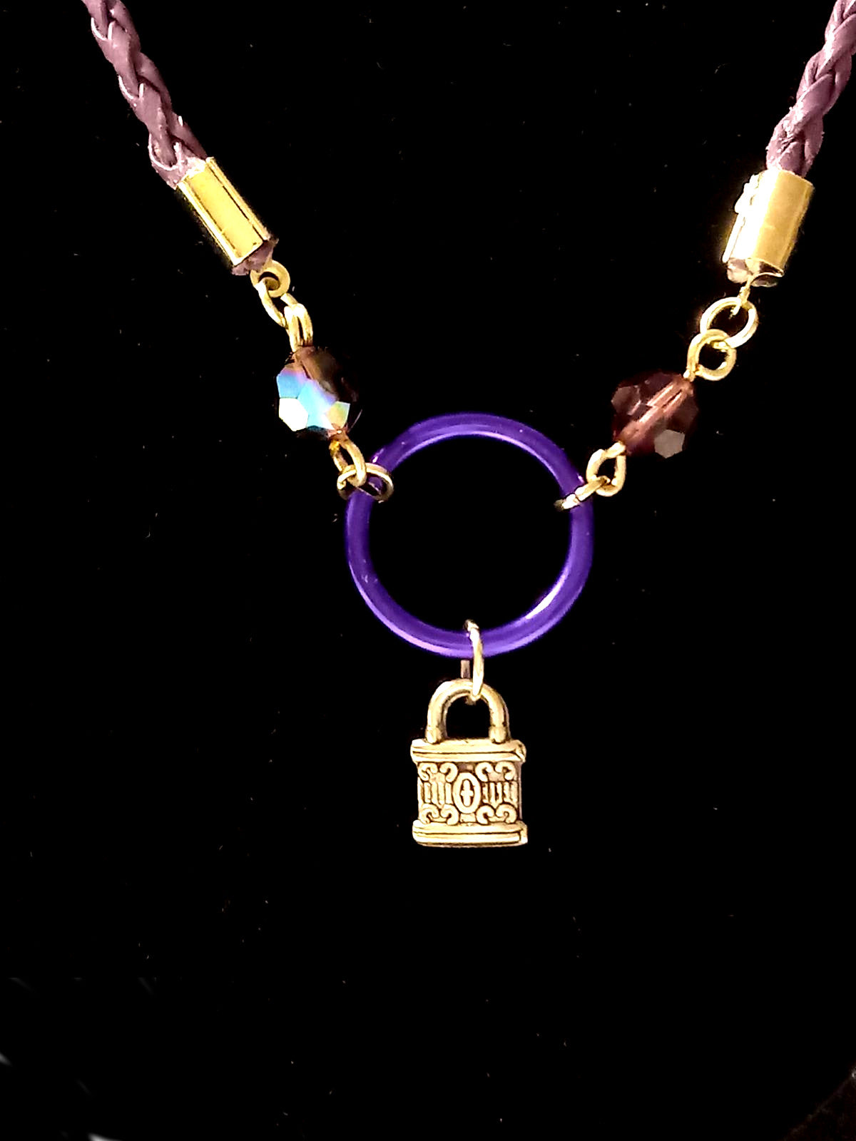Newly designed for our Wanna Play Body Jewelry Intimates Collection, this Discreet Daytime Purple Leather And Crystal Captive Choker is a limited edition piece exclusively from ShopAtLuxe. Handcrafted from high quality materials, this choker sports an adorable antique silver lock charm, suspended from an anodized purple steel O ring, held captive by two equal strands of braided purple leather. 6mm amethyst faceted crystals, and Silver tube embellishments are added for a luxurious look and feel. 19 inches in length with a three inch extender chain with a tiny silver key as the drop bead; lobster claw closure. Lead and nickel free. Perfect as a gift for yourself, or to give as a spicy gift to someone else. Complimentary gift with purchase.
