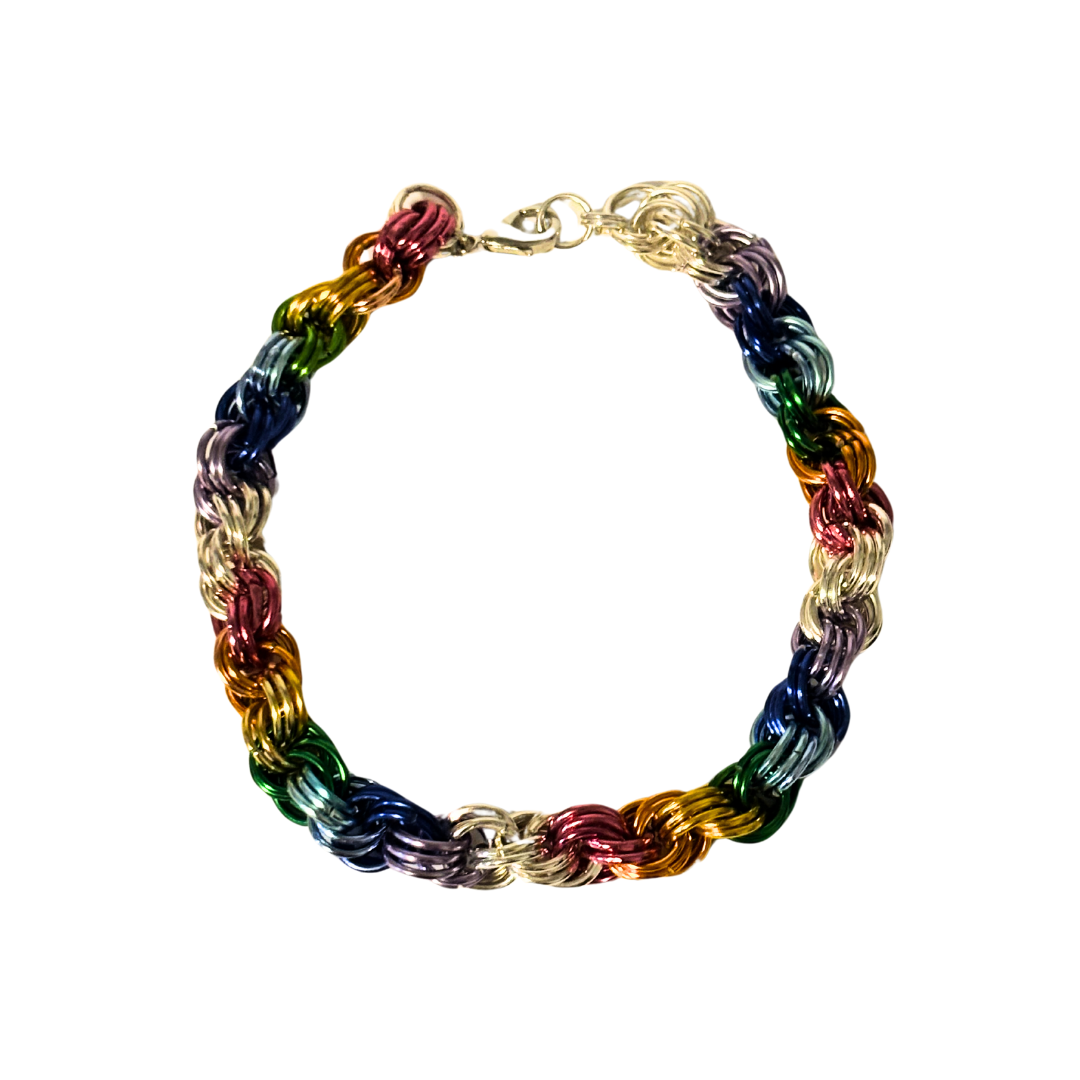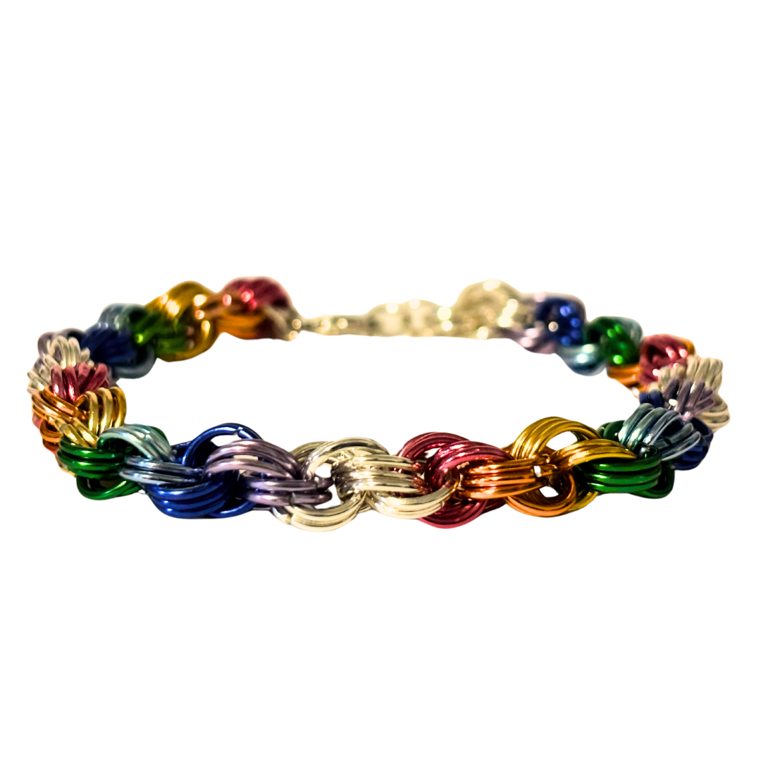 Newly released for our Got Pride Collection, this vibrant 8.5 inch loose fit hand woven Byzantine bracelet is constructed of boldly colored aluminum rounds, and it's fluid style characterizes the perfect bracelet for celebrating LBGTQ+ Pride. Polished to a brilliant shine, this stunner secures with a lobster claw clasp for a secure fit. Hypoallergenic; lead and nickel free. Complimentary gift with purchase!
