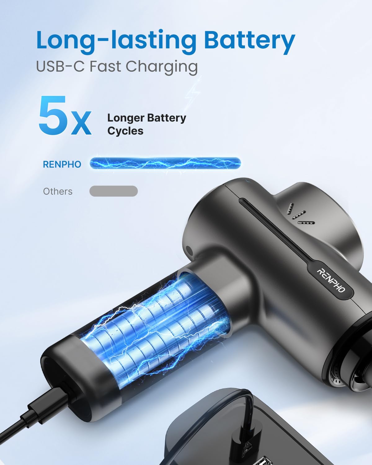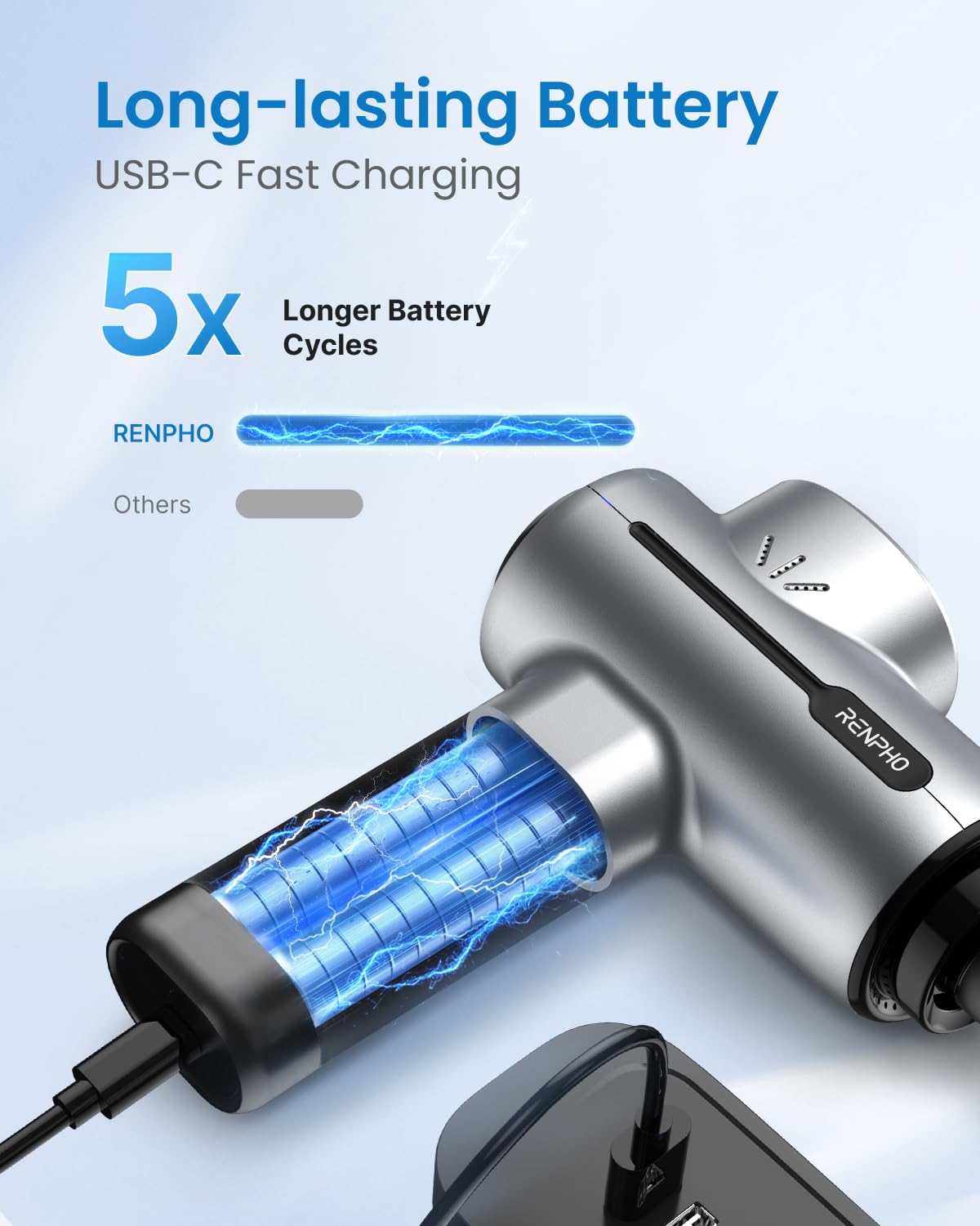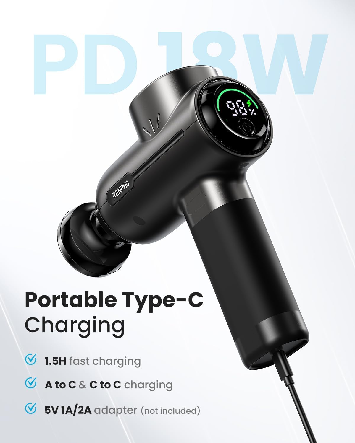 - Convenient USB-Type C Charging: No need to worry about charging when traveling, this rechargeable massager gun can be charged using a 5V/2A adapter (not included) or a power bank. Ensure to fully charge the massager before its initial use