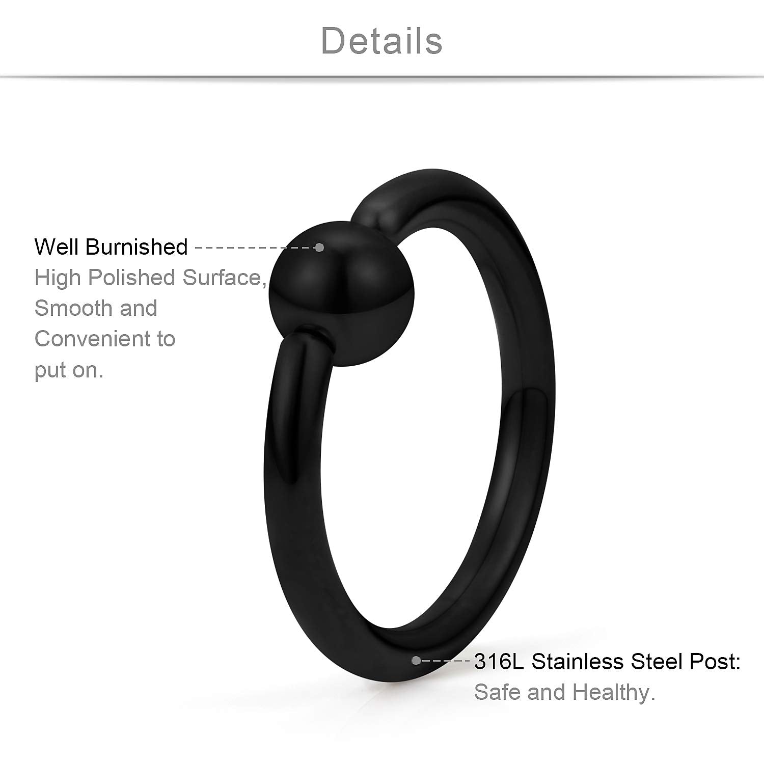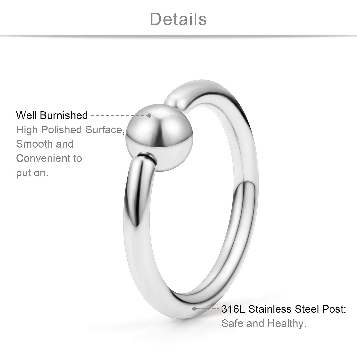 SCERRING 4 Pairs 20G 16G 14G 12G Stainless Steel Captive Bead Ring Nose Hoop Rings Eyebrow Lip Ear Tragus Cartilage Daith Septum Nipple Belly PA Retainer Piercing Jewelry 10-16mm