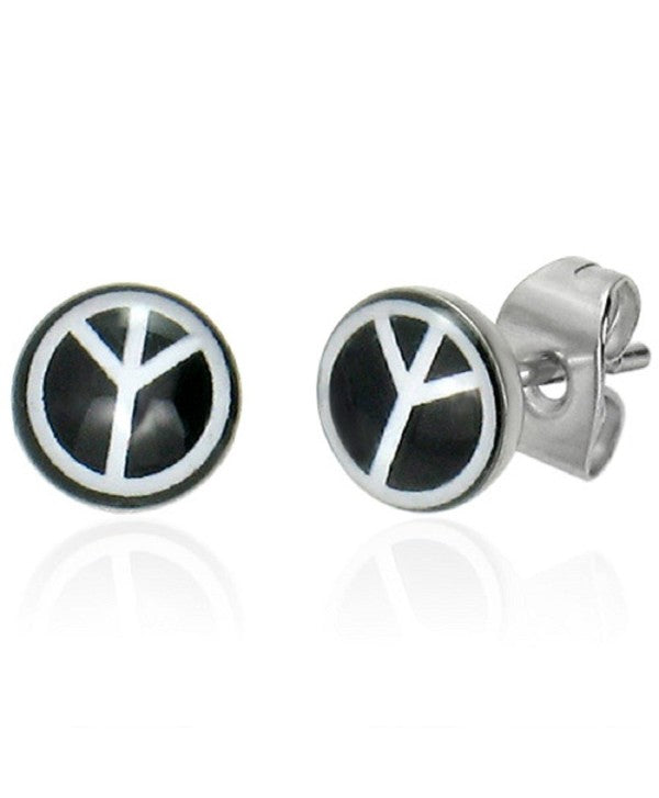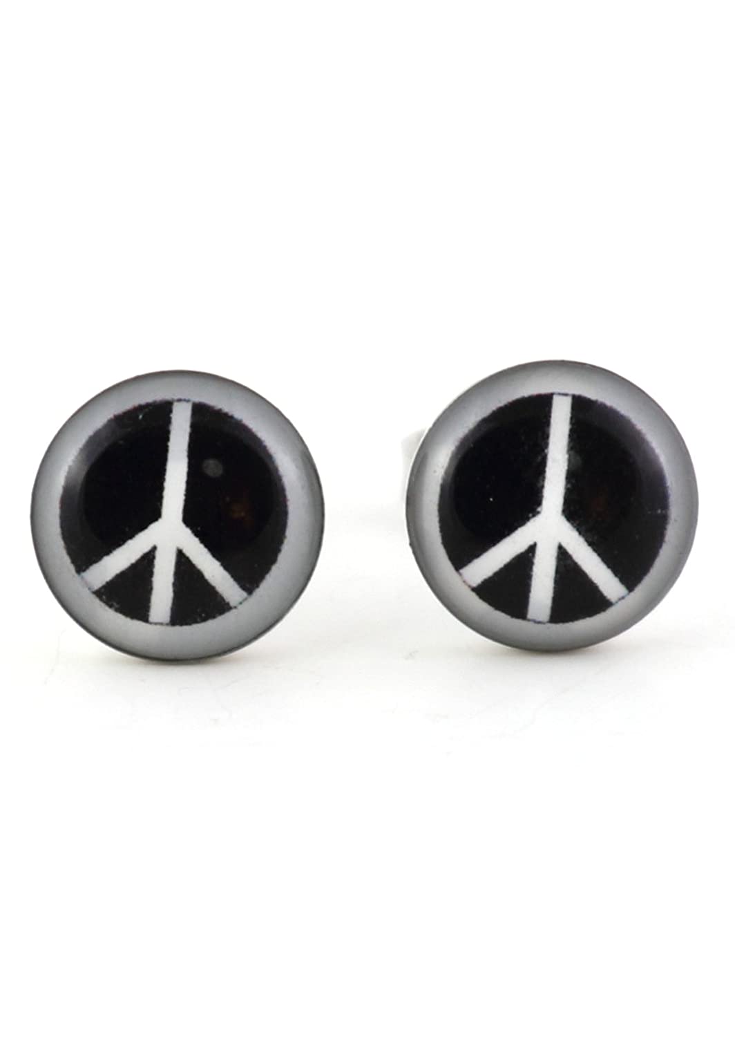 Peace signs are silver plated alloy and measure .25 inches in diameter, (12mm) with silver plated posts.