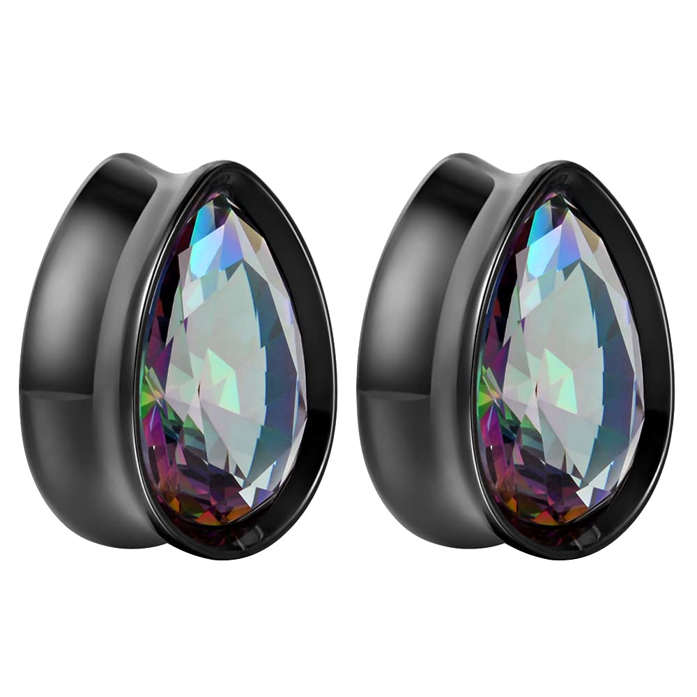Surgical Steel Teardrop Zircon Double Flared Ear Tunnels and Plugs Stretcher Expander Sold As Pair Gauge 8mm-25mm