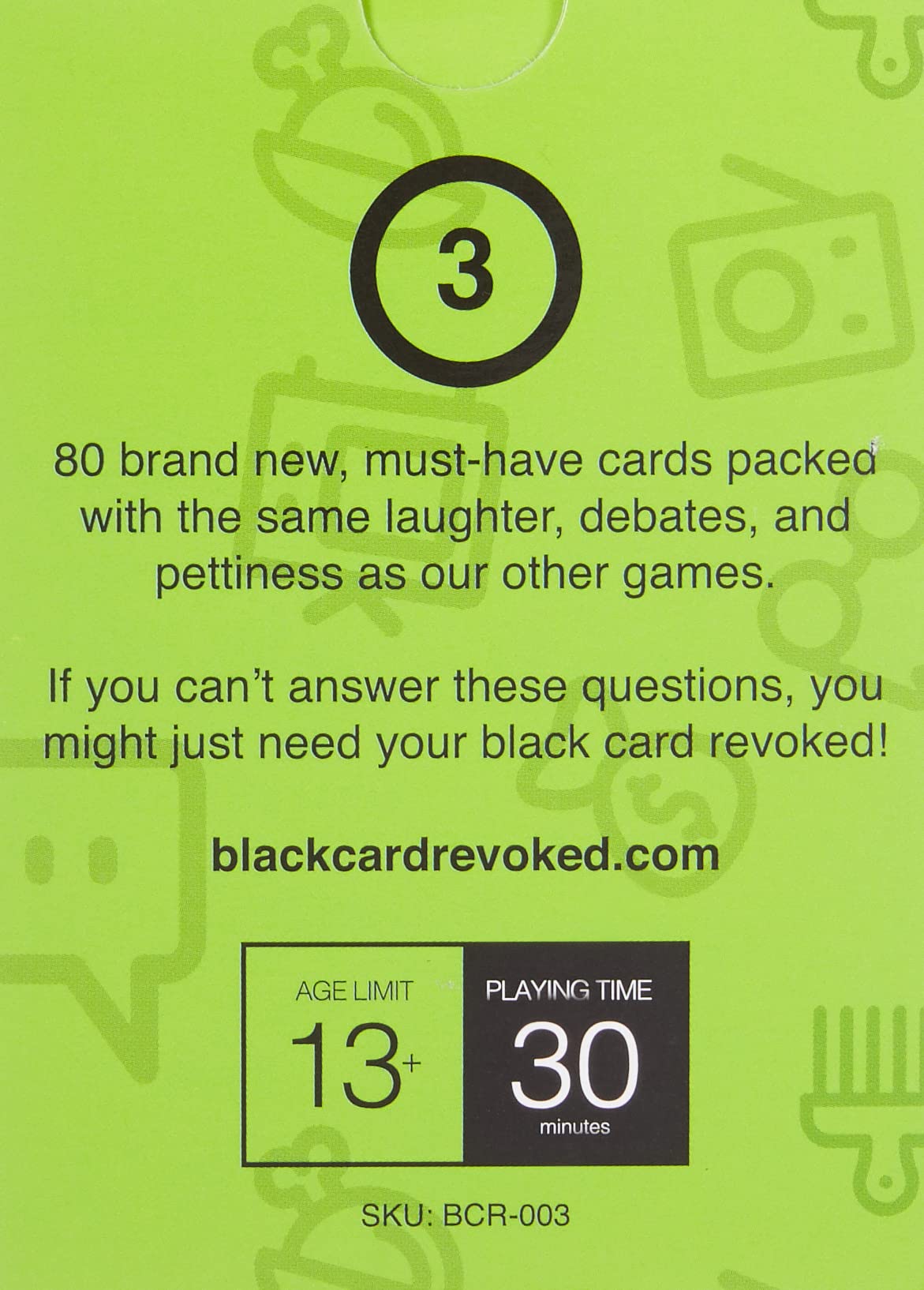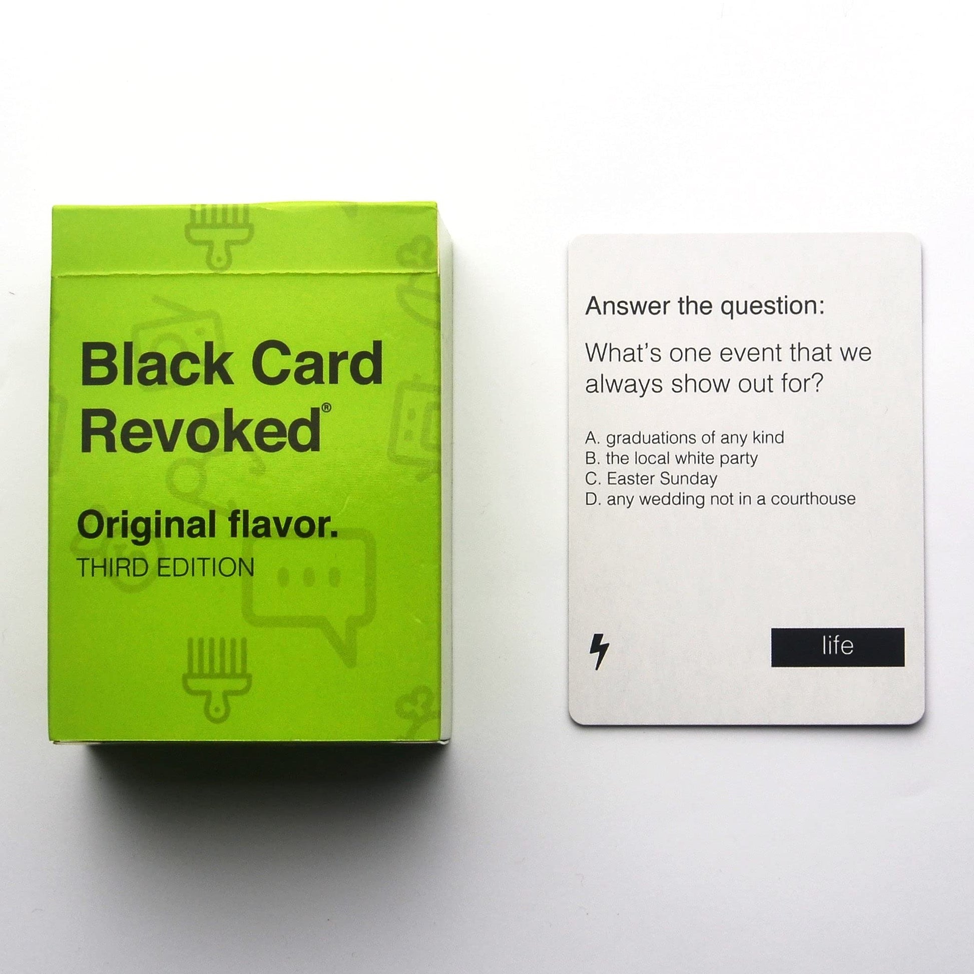 - AMERICA’S FIRST CULTURAL GAME: More laughs, more dancing, more nostalgia in Black Card Revoked’s Third Edition. Full of Trivia about the in’s and out’s of Black Culture. Will you keep your Black Card or will you get your Black Card Revoked?