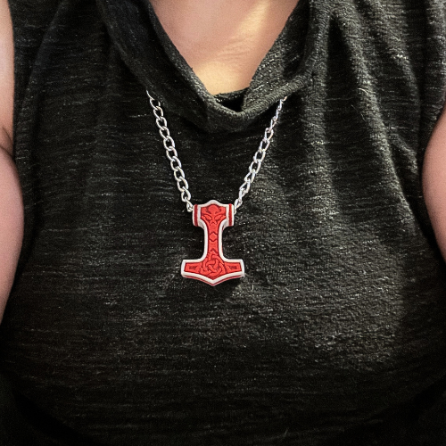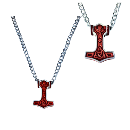 Enjoy this captivating necklace with a handmade 3d print red and silver Viking hammer pendant and lightweight Cuban link chain! Complimentary git with purchase.