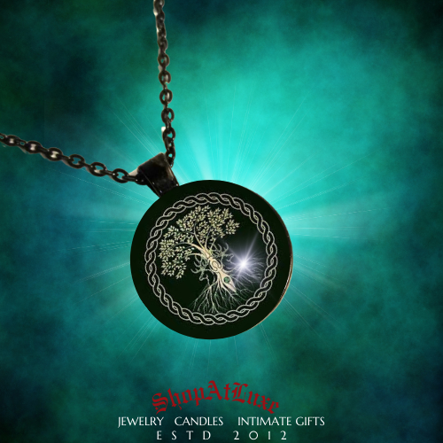 Newly handcrafted from Michigan, this elegant necklace is constructed of high quality pieces. A beautiful illustration of the tree of life symbol under glass, is bonded to a 1.1 inch decorative black bevel, suspended from a matching link chain of 20 inches. If in need of a different length or type of chain, please notify us through messaging. Lead and nickel free; hypoallergenic.