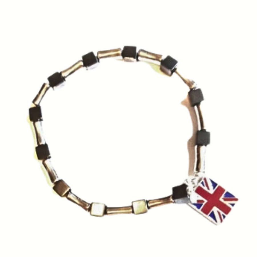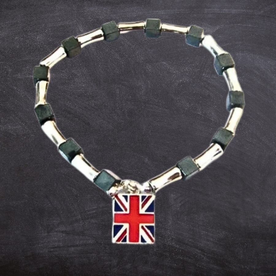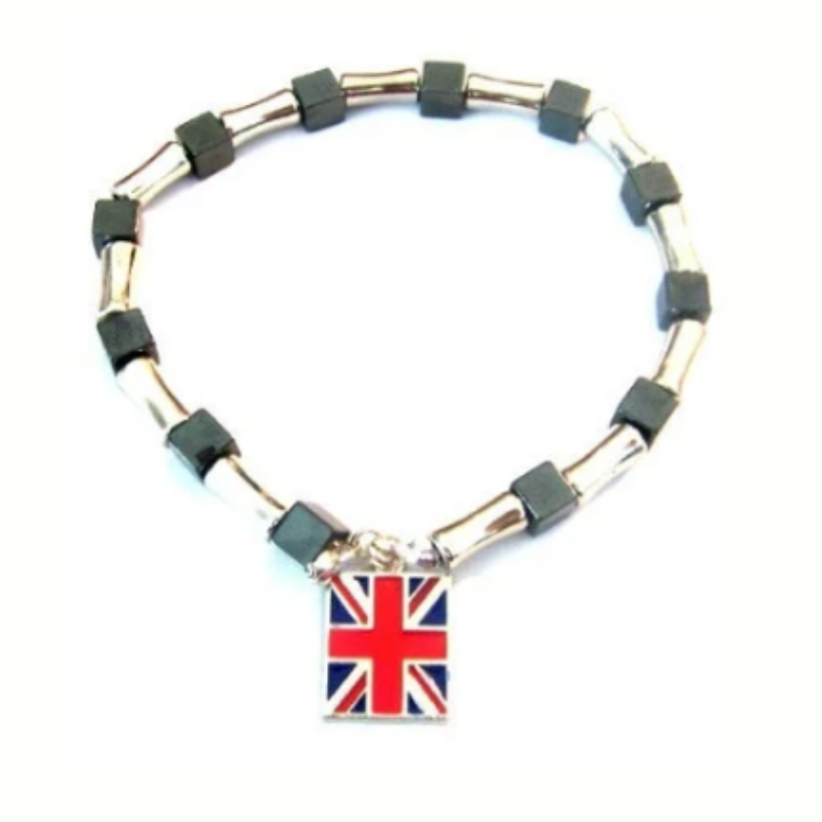 UK Flag Steel & Hematite Bracelet