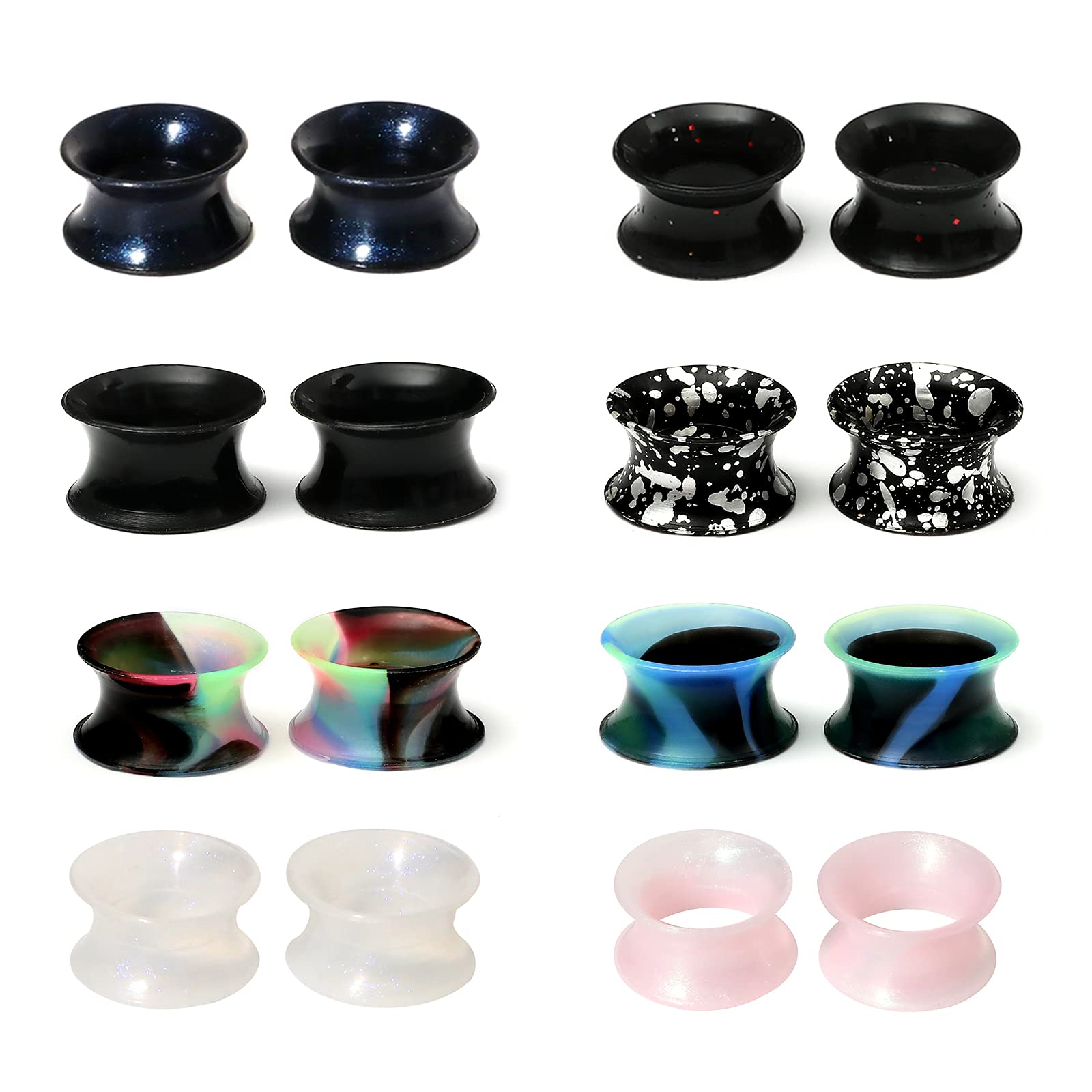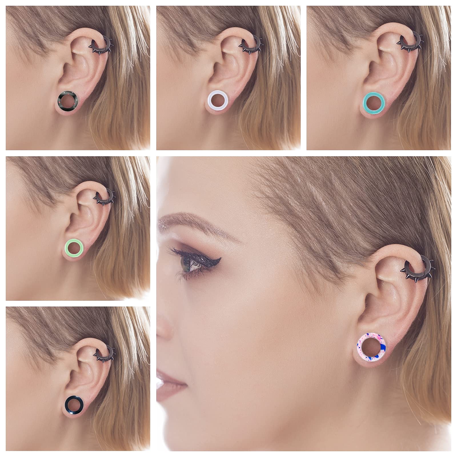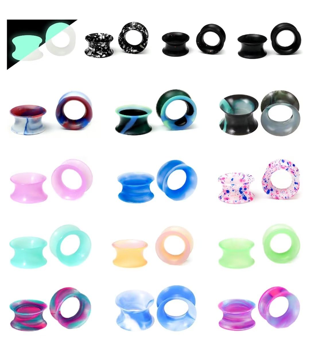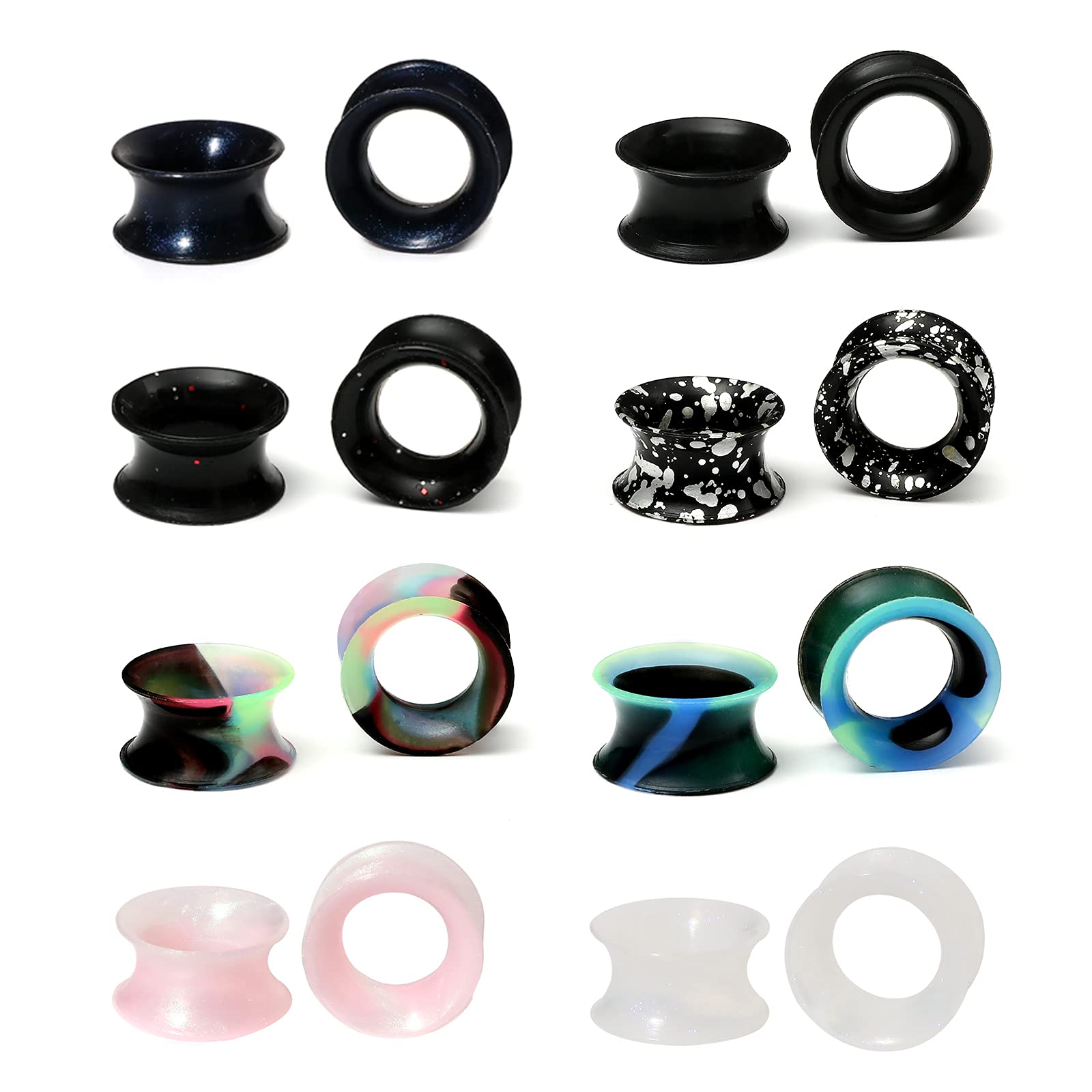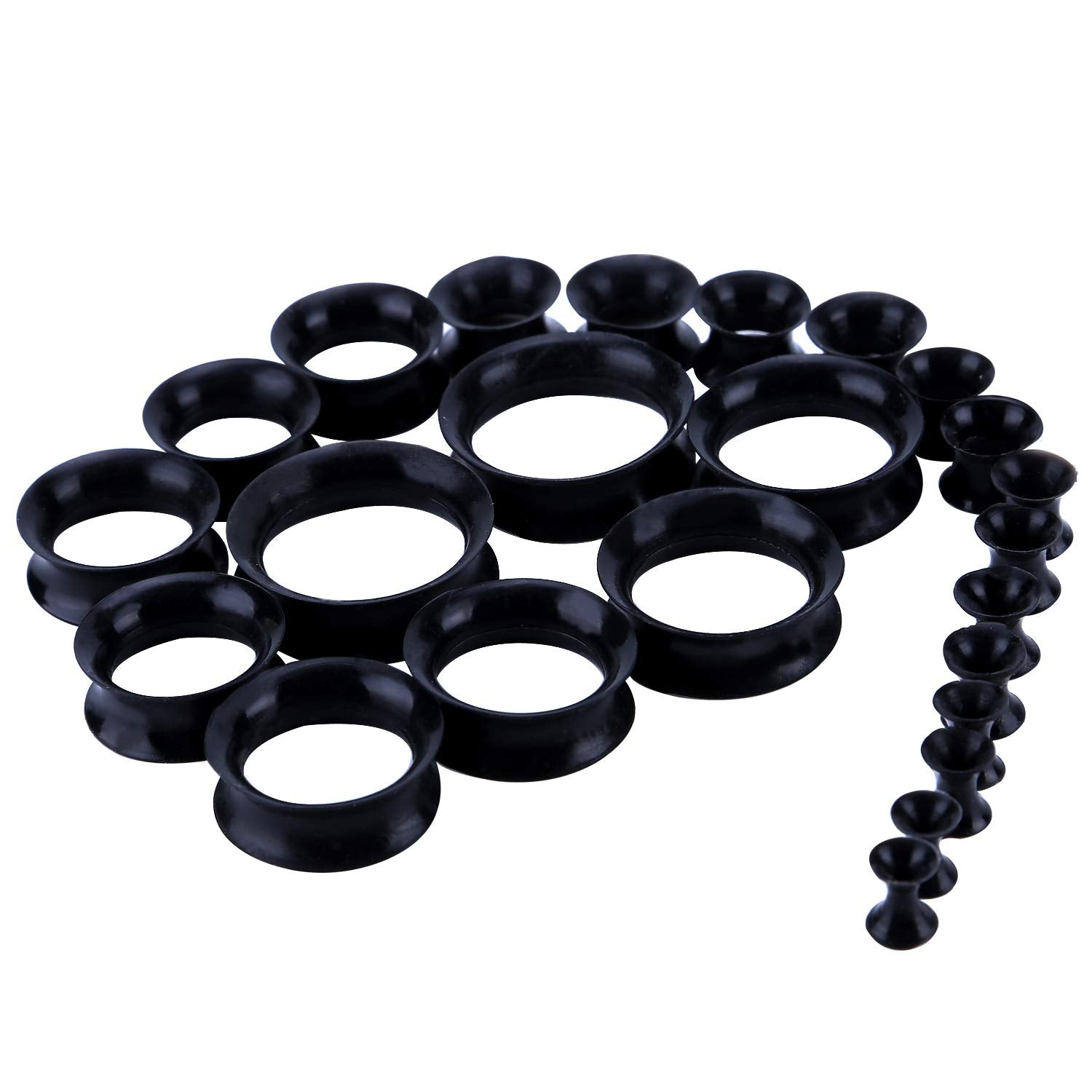 WBRWP 48/32/24/22/20/16/12pcs Ear Tunnels and Plugs - Double Flared Hollow Hard/Soft Silicone Ear Gauges - Ear Expander Stretcher Body Piercing Jewelry 8g-1"