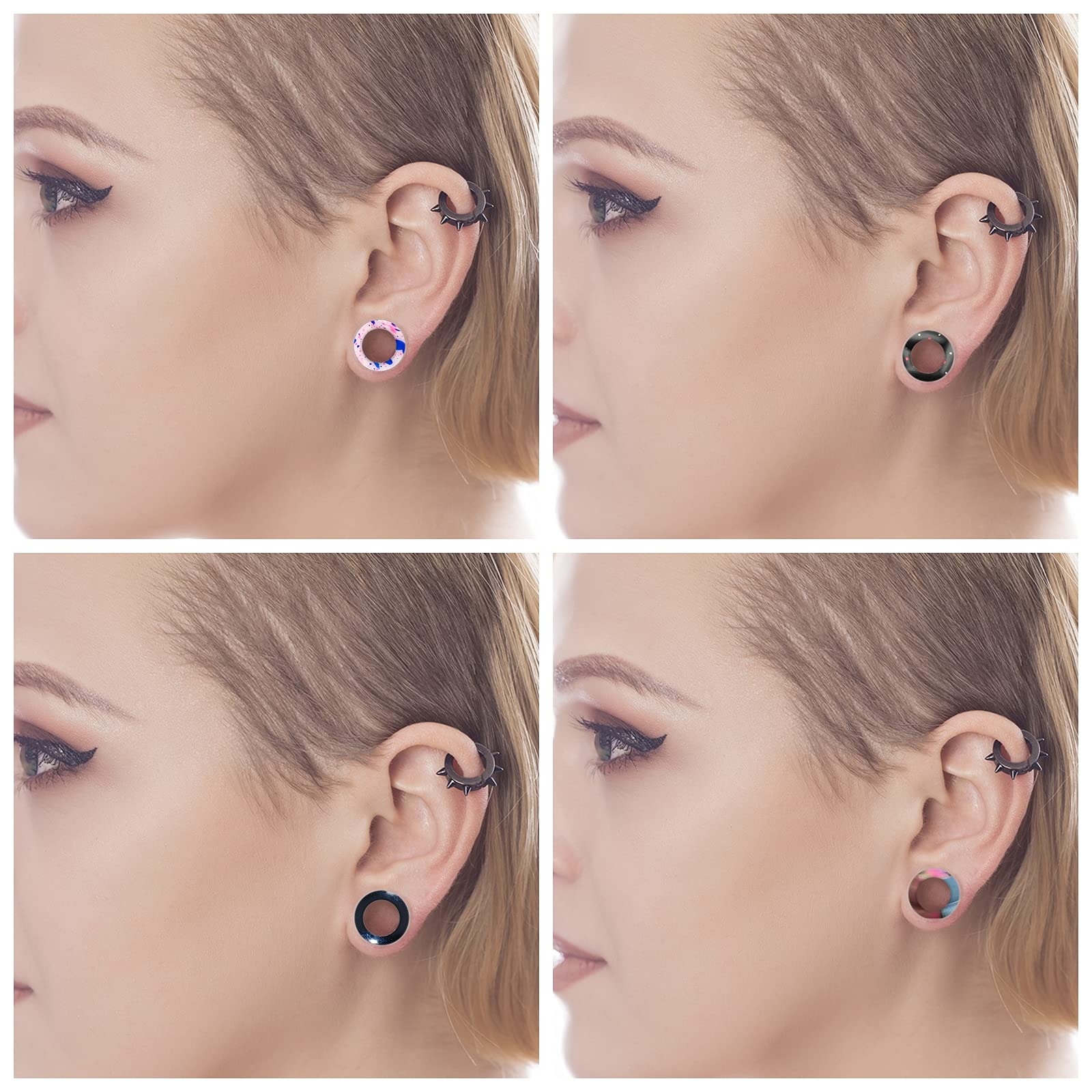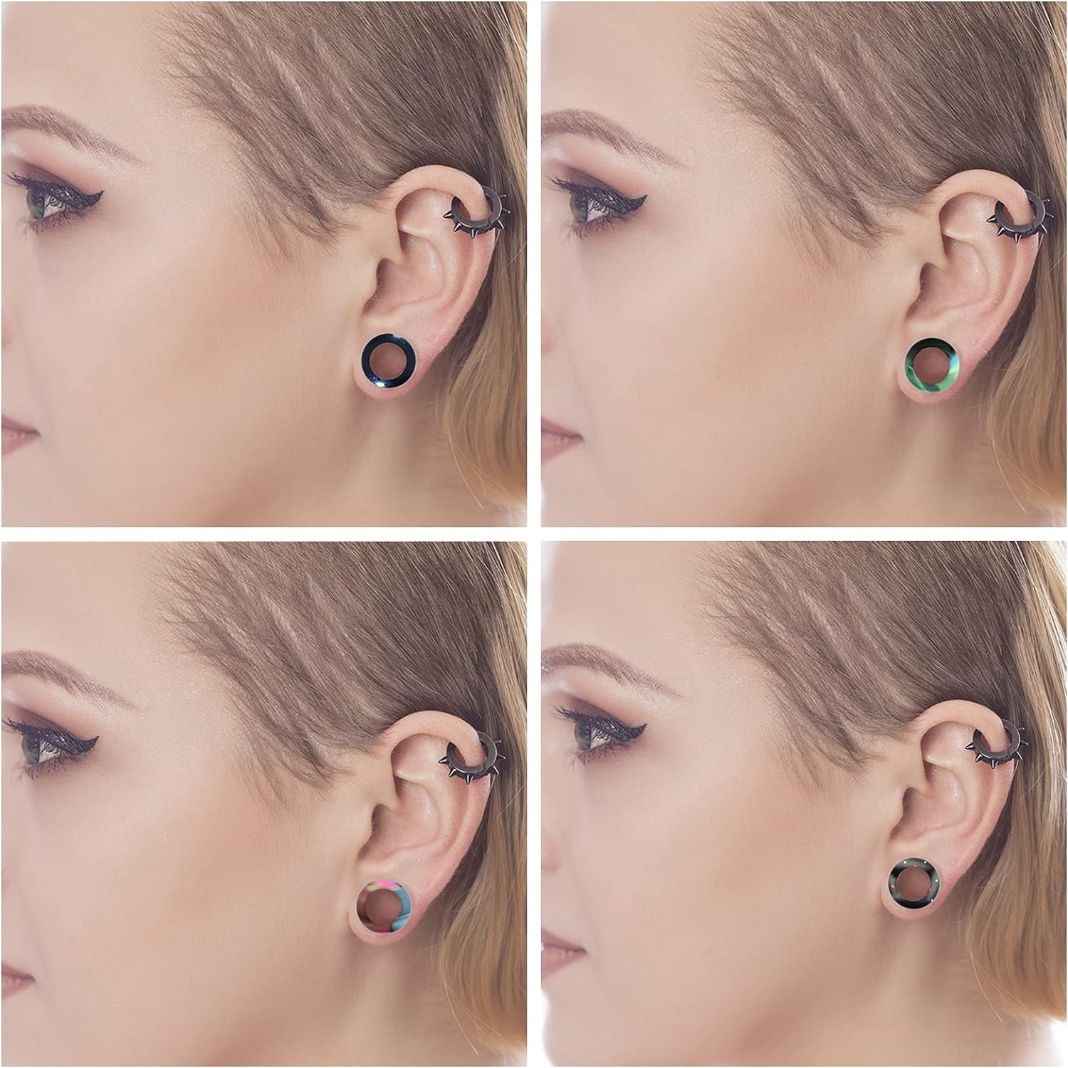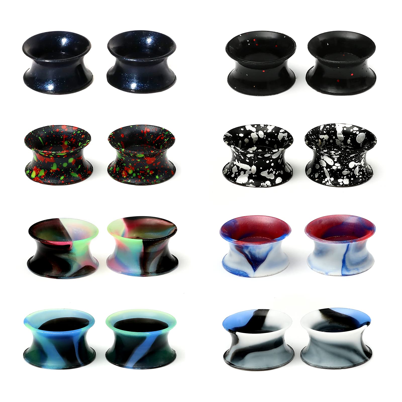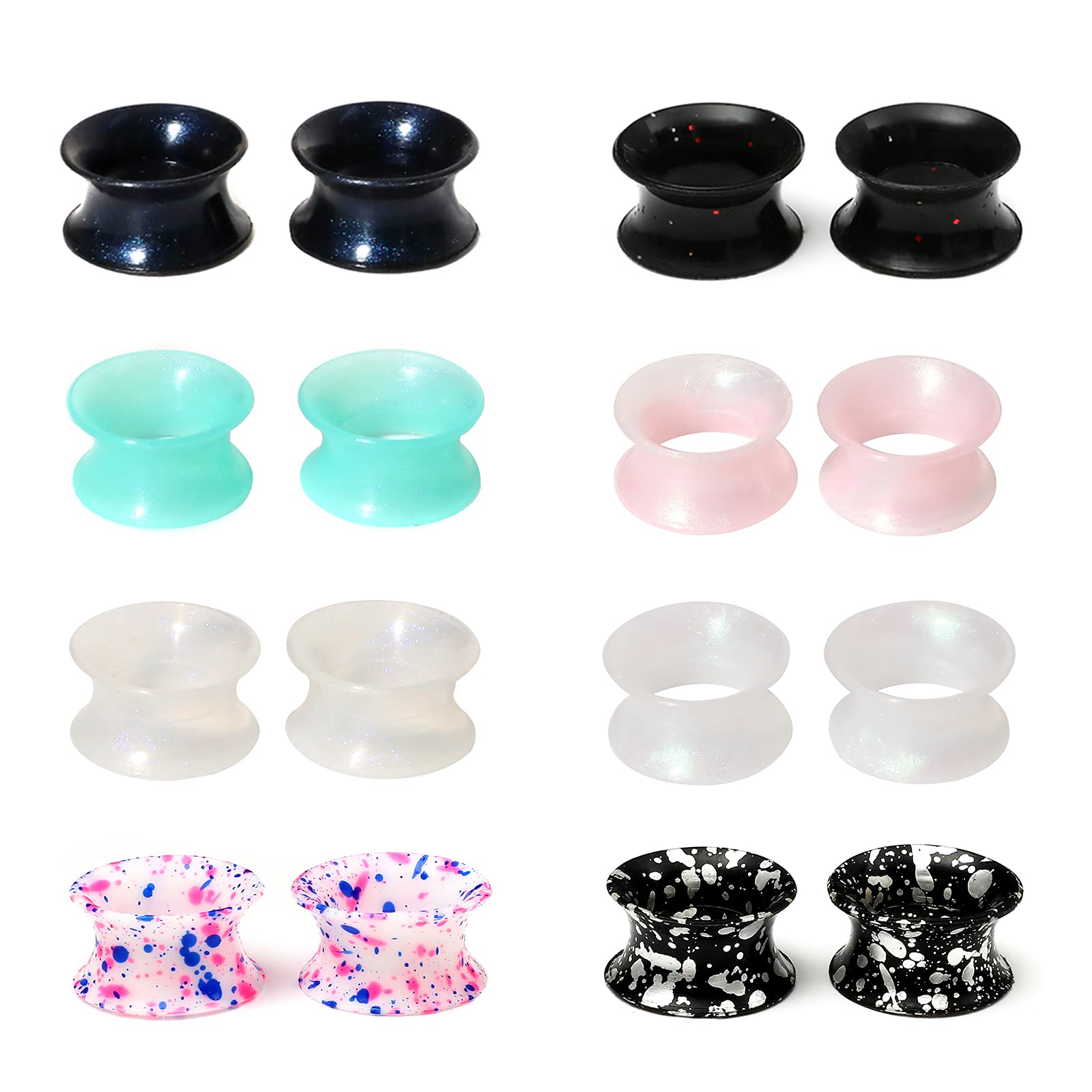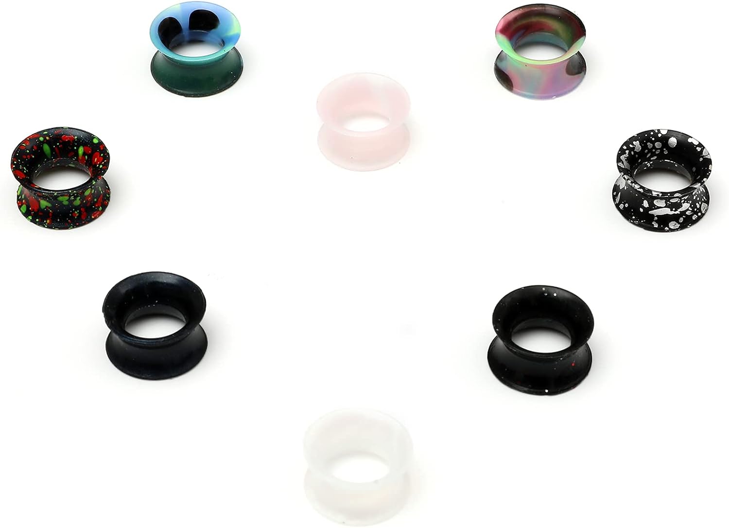 WBRWP 48/32/24/22/20/16/12pcs Ear Tunnels and Plugs - Double Flared Hollow Hard/Soft Silicone Ear Gauges - Ear Expander Stretcher Body Piercing Jewelry 8g-1"