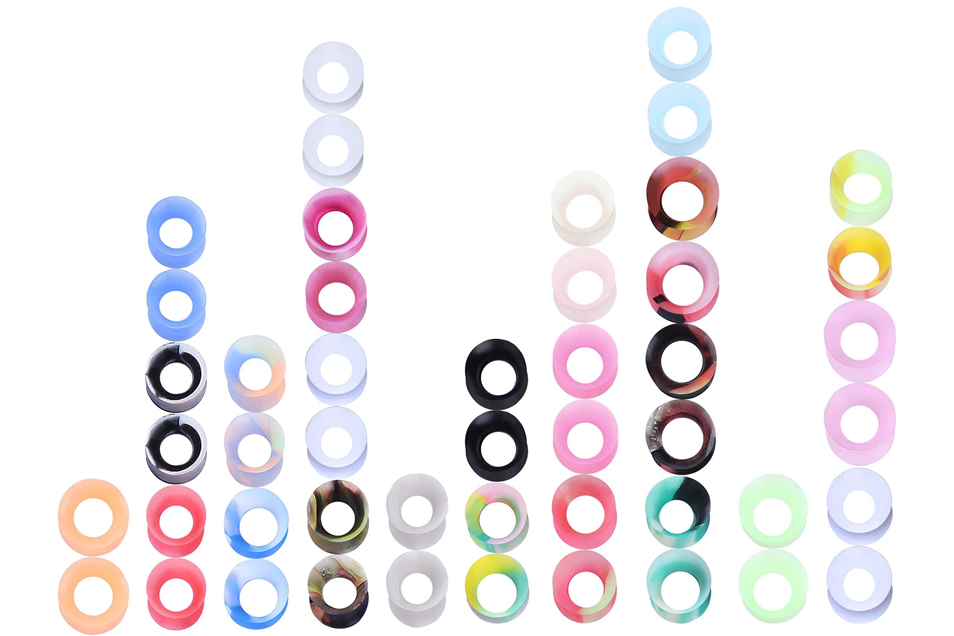 - {Double Flared Silicone tunnels} - Gauge: 8g(3mm),6g(4mm),4g(5mm),2g(6mm),0g(8mm),00g(10mm),1/2"(12mm),9/16"(14mm),5/8"(16mm),11/16"(18mm),3/4"(20mm),7/8"(22mm),1"(25mm),1 1/8"(28mm), 1 3/16"(30mm), 1 1/4"(32mm), 34mm, 36mm, 40mm