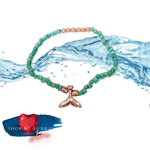 New from our Resort Wear Collection comes an adorable little bracelet, constructed of iridescent bold copper accents, sea glass beads and a matching copper whale's tail charm. This beautiful beach themed gives a little stretch, and sports a loose, casual fit. Add this statement piece to vacay look with this totally boho bracelet! Complimentary gift with every purchase from Shopatluxe!