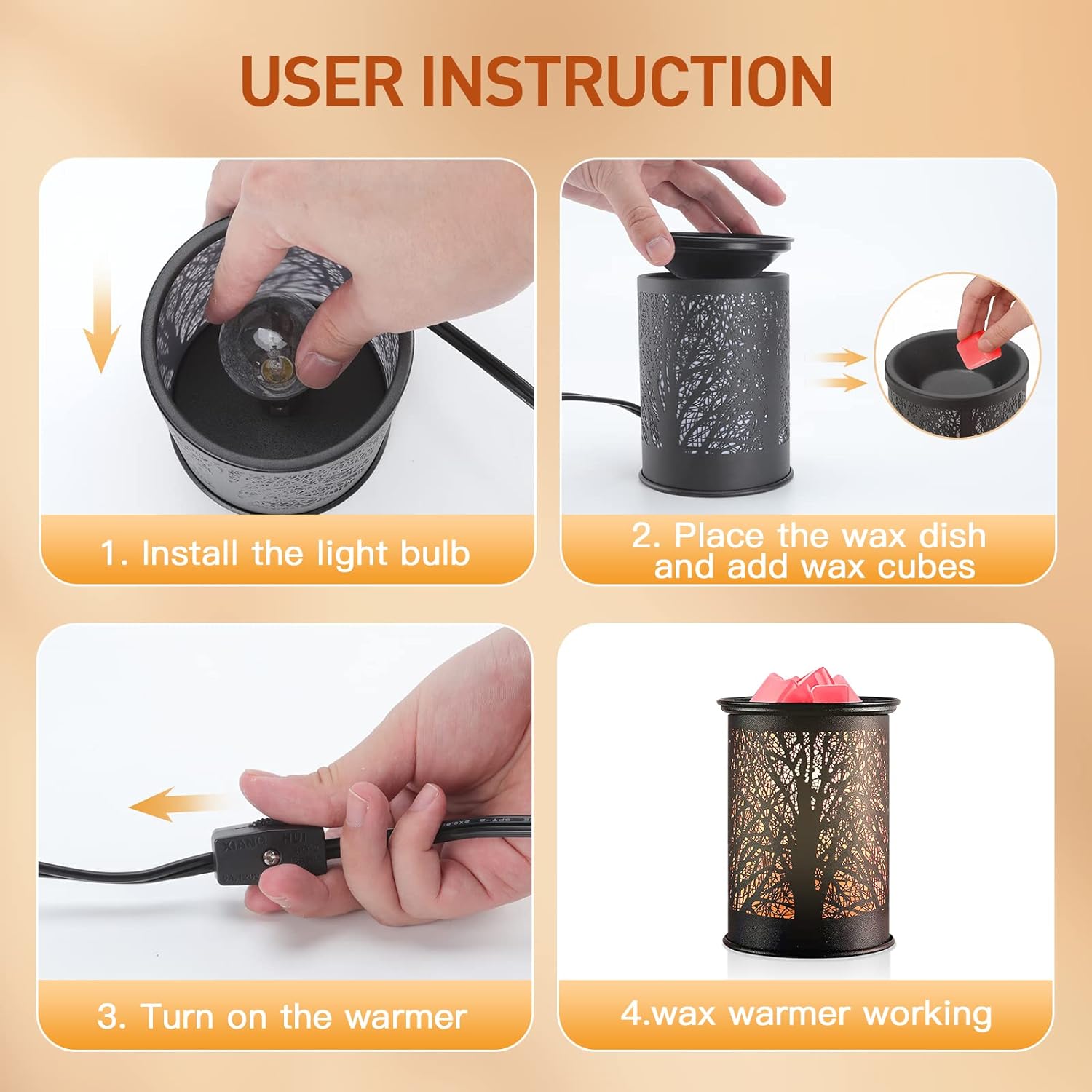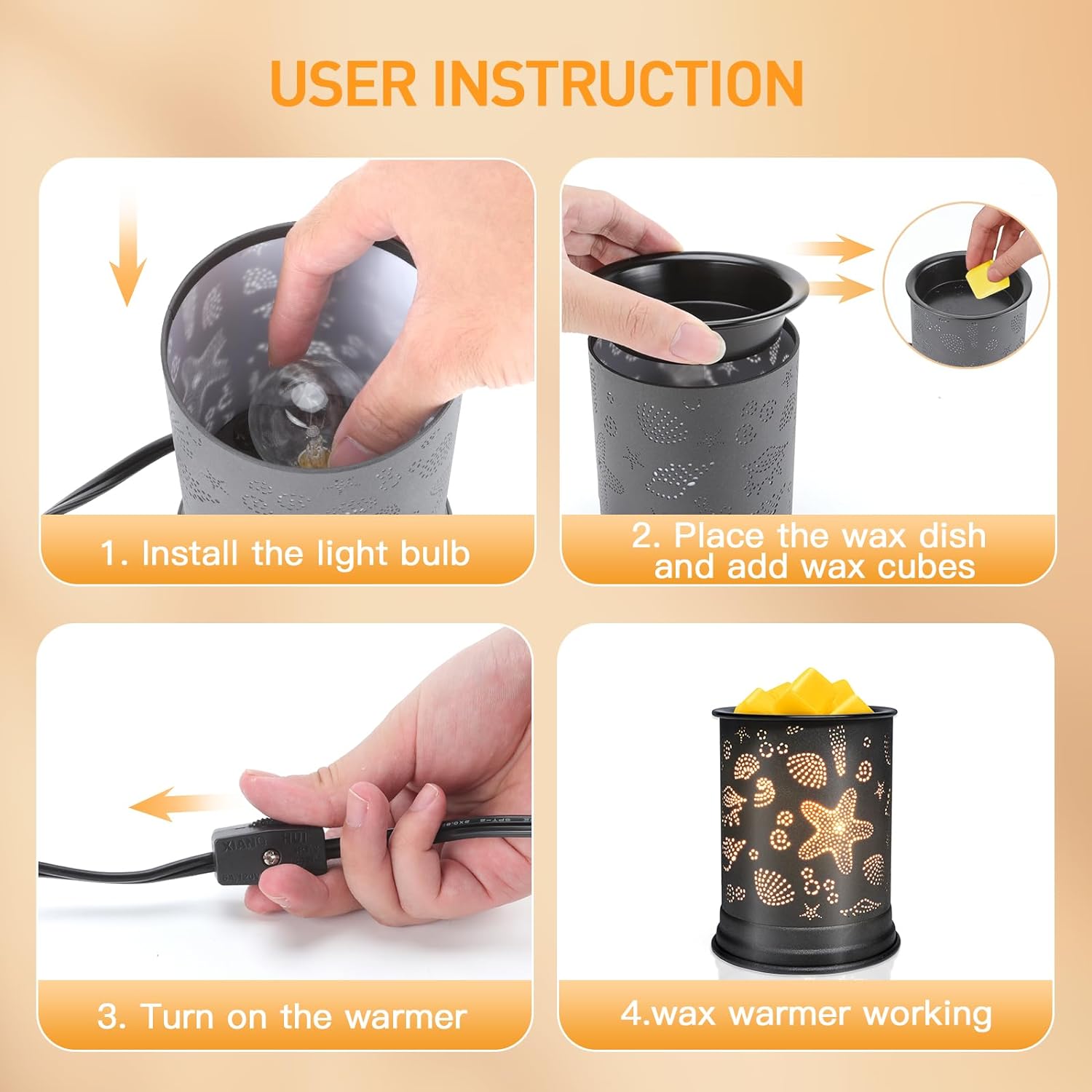 - Simple and Convenient - The YUWENUS electric wax warmer is effortless to use. Simply insert a light bulb, plug it in and turn it on. With the touch of a button, the wax cube will melt, releasing a soothing fragrance to create a tranquil atmosphere in your home
