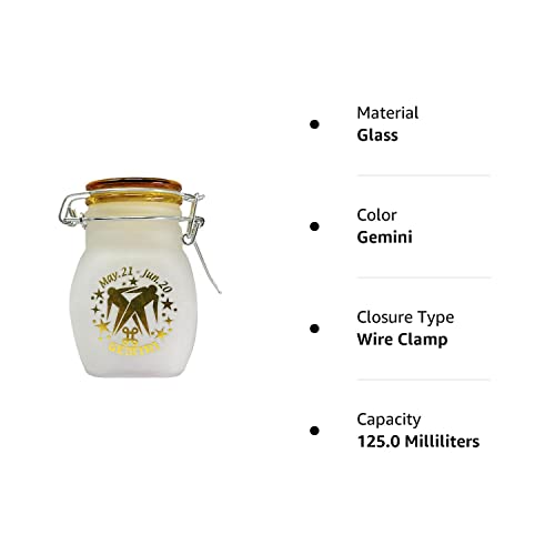 SAFE STORAGE — These steel-hinged airtight glass mason jars lock away all aroma, keeping your content fresh and sealed MEASUREMENTS — Jar measures 3 1/4 inches high, 2 inches wide, 2 inches deep. The mouth is 1 1/4 inches wide, allowing you to store up to 4 ounces of liquid, or a 1/4oz of your preferred herbs, spices, coffees, or teas MADE TO LAST — Each thick frosted glass jar and lid are bound together with stainless steel, and crafted of the finest lab-grade borosilicate glass HOME AND TRAVEL — These jars look great in the kitchen, on a dresser or bookshelf, or can easily fit in a bag or backpack SIGNS OF THE ZODIAC - Capricorns belong to the element Earth, which makes sense considering how grounded they are in reality. Generally pragmatic, ambitious, and disciplined, Capricorns can also be stoic.